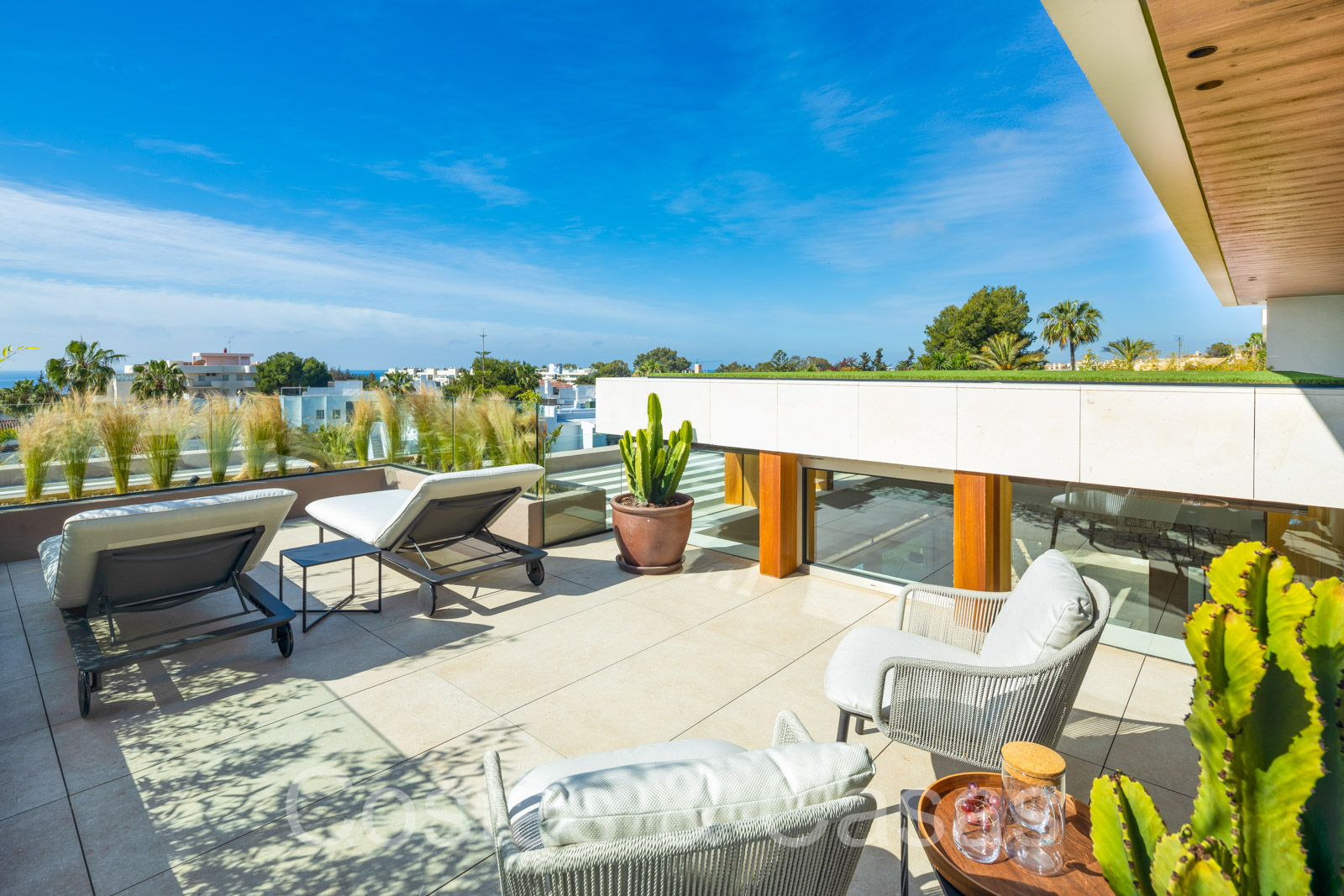 Een dakterras biedt 360° uitzicht op de La Concha berg en de Middellandse Zee.