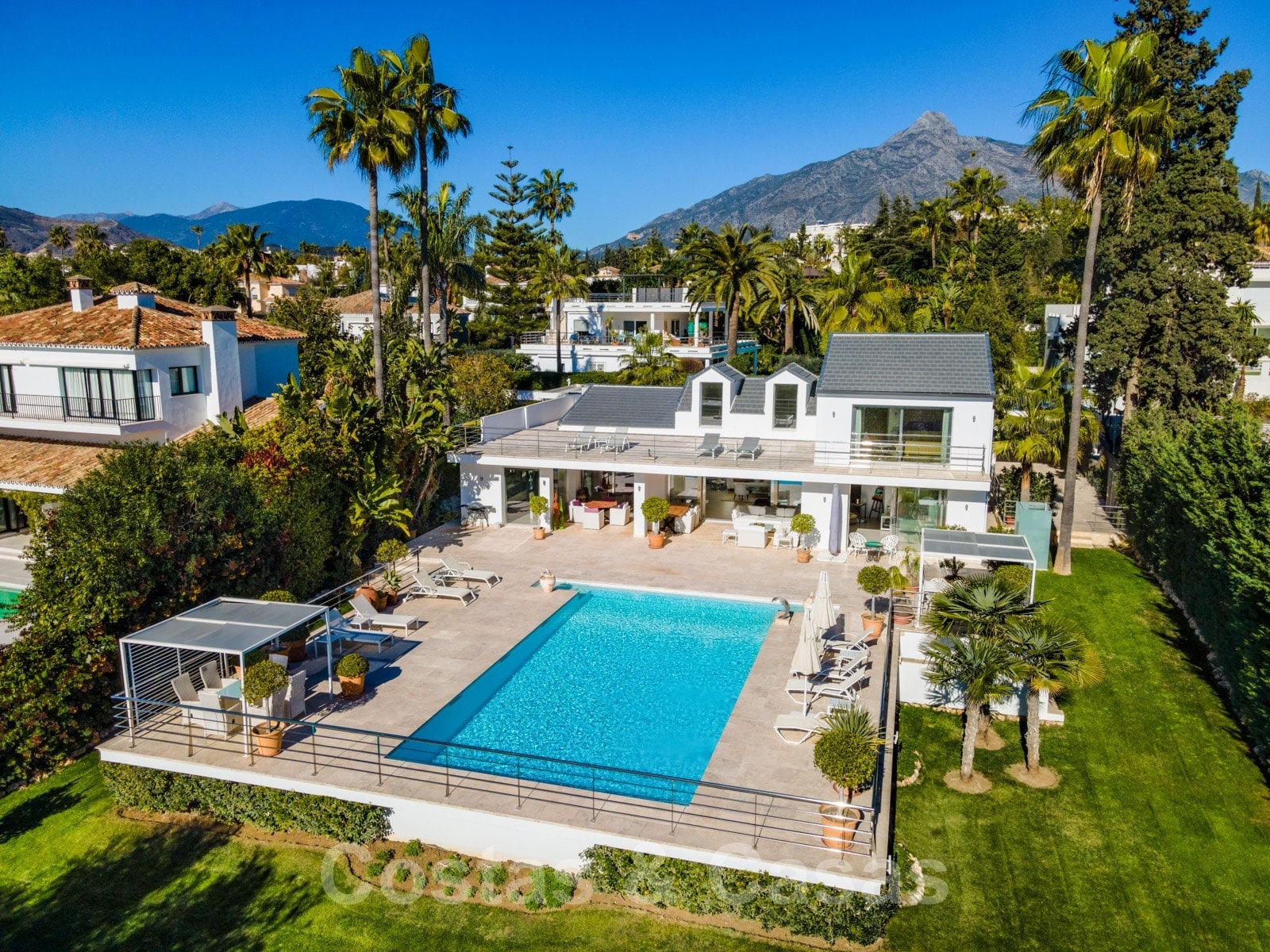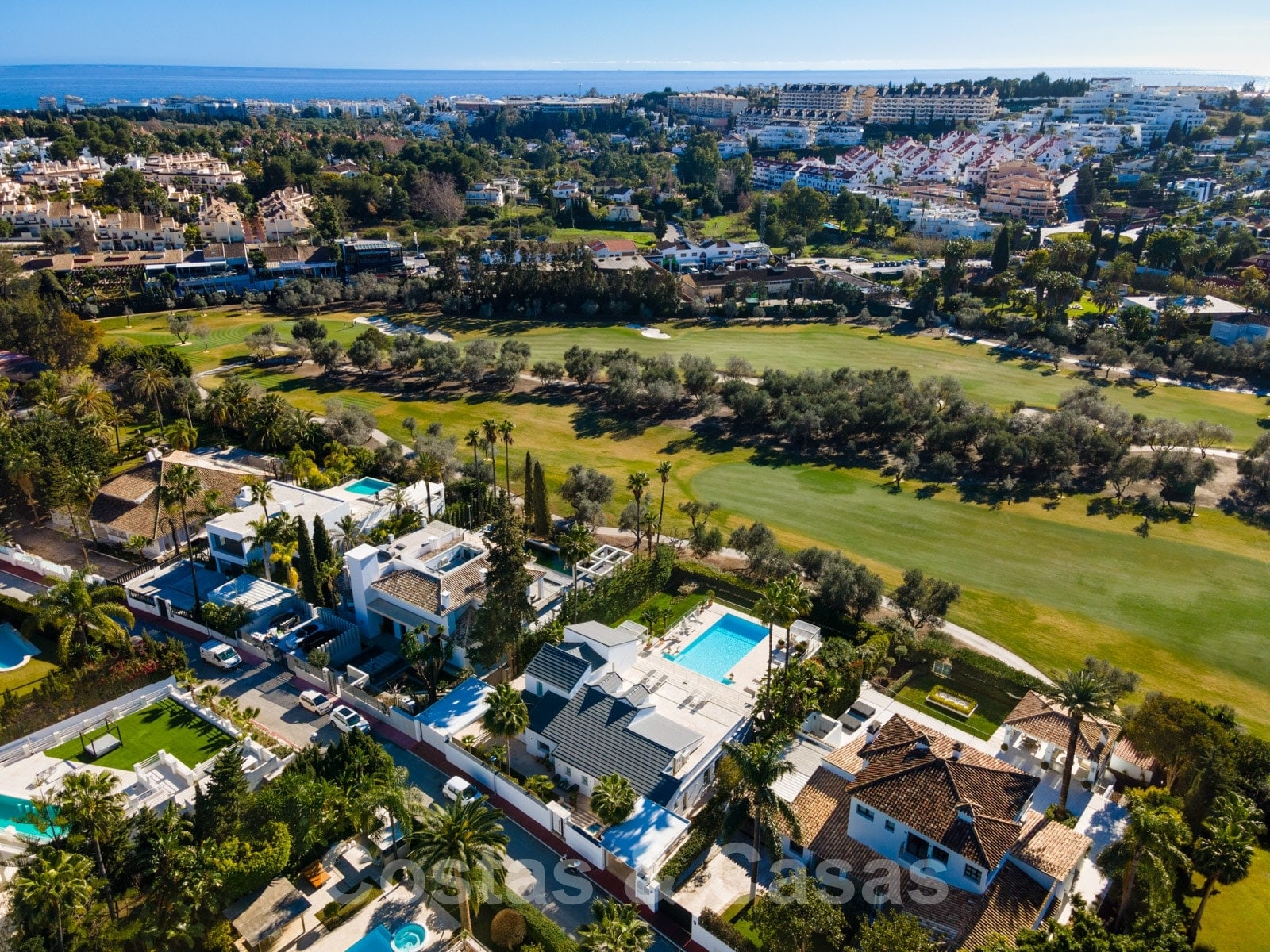 Luxueuze villa te koop in een afgesloten en beveiligde woonwijk, direct aan de golfbaan van Las Brisas in Nueva Andalucia, Marbella