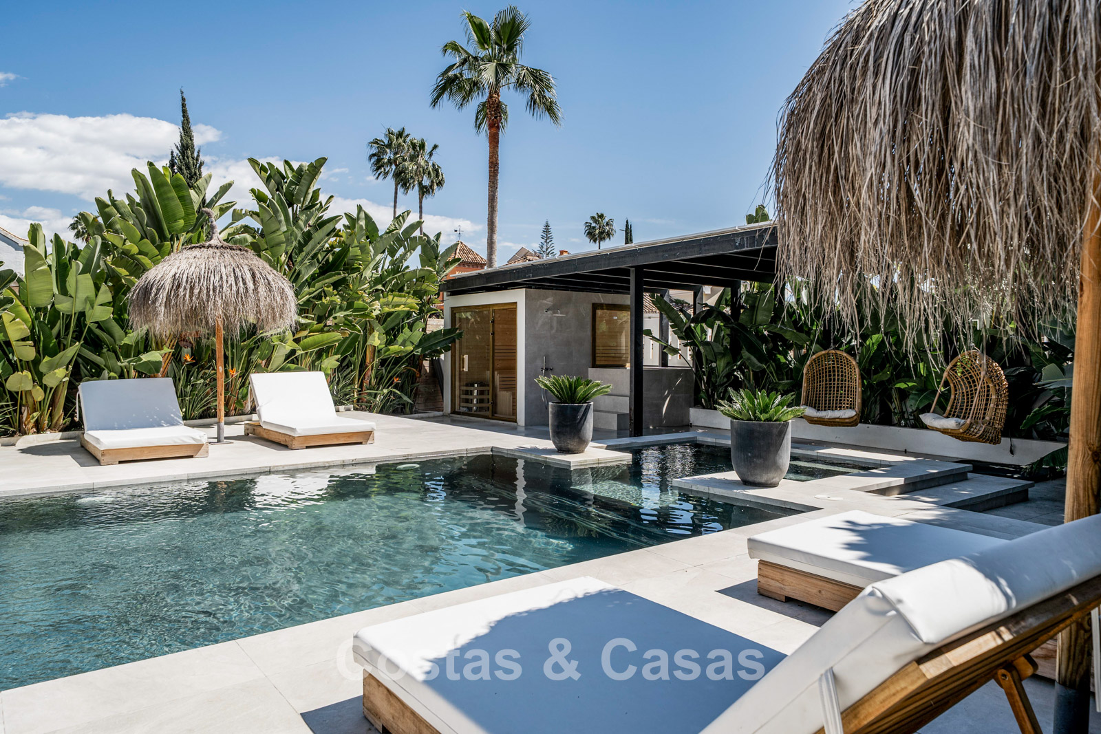 Het exterieur biedt een moderne, mediterrane stijl met een vleugje boho-luxe resortflair.