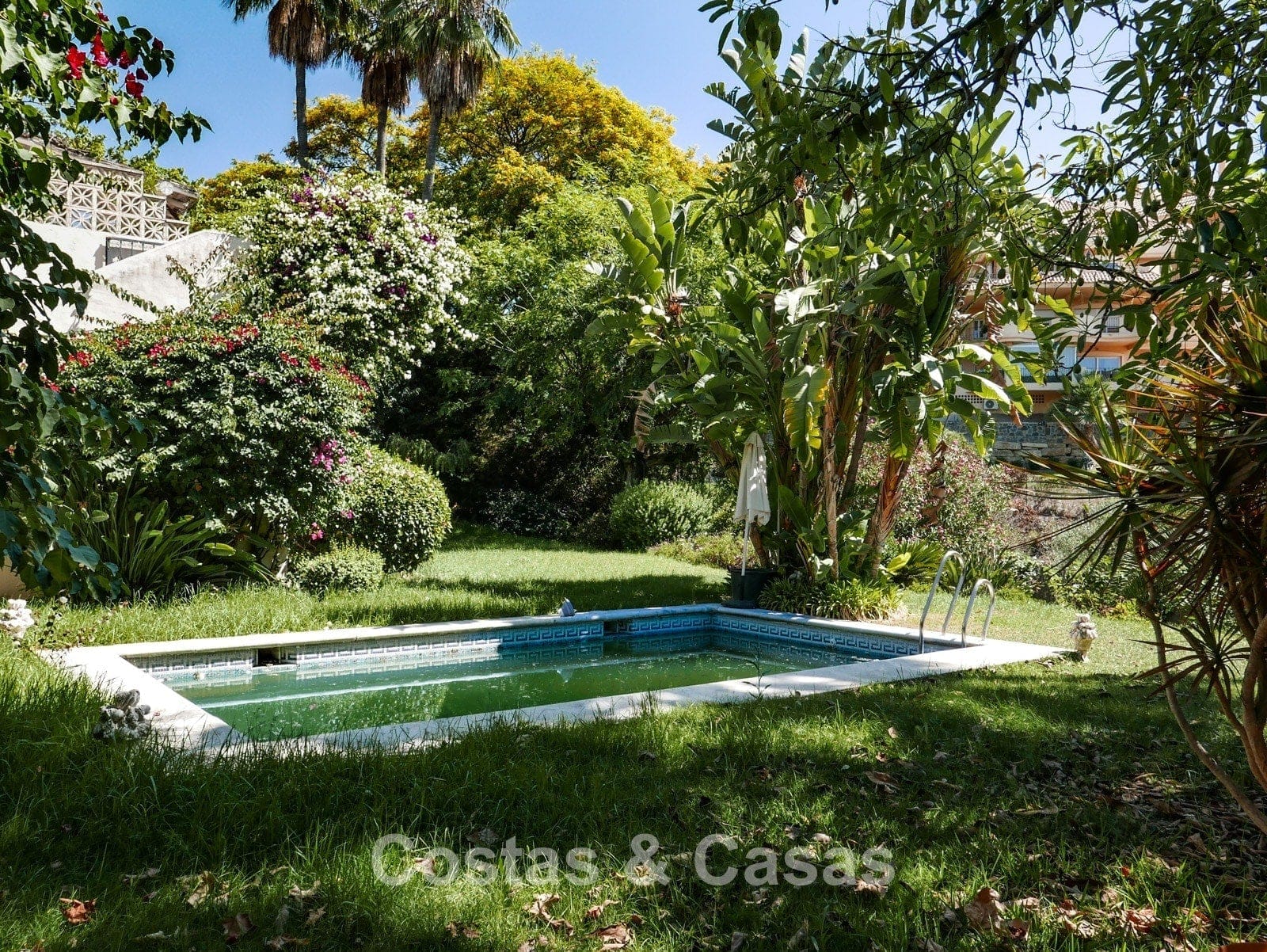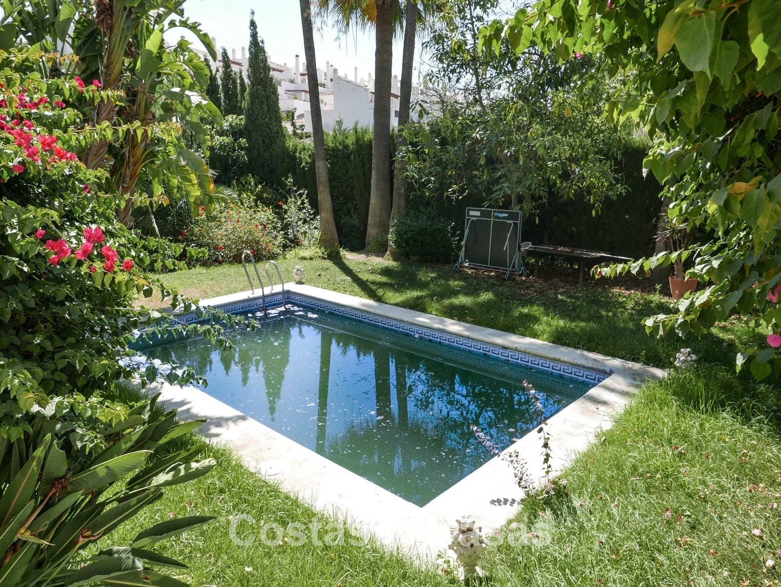 • Omheinde tuin met privézwembad.