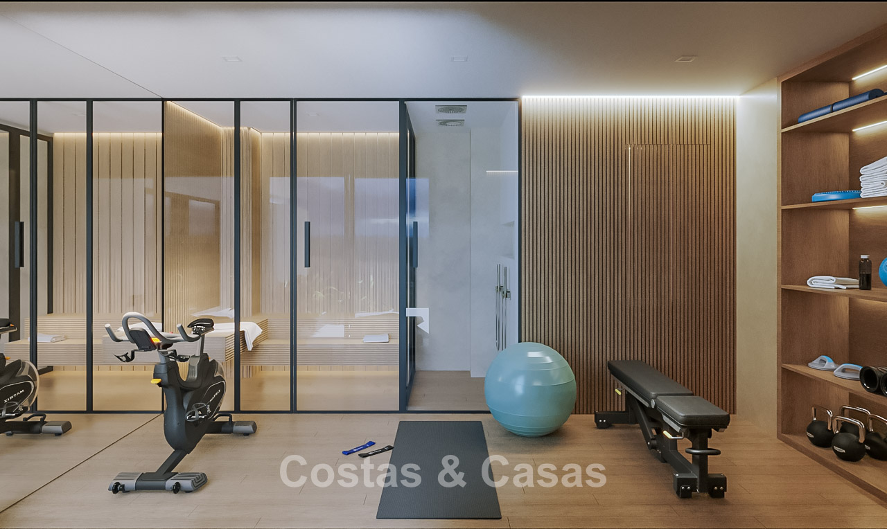 Uitgeruste fitnessruimte met aanpalend wellnessvoorzieningen.