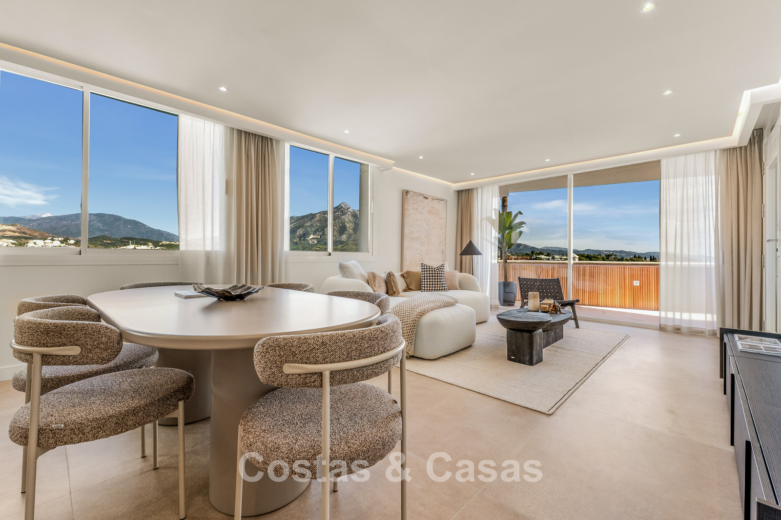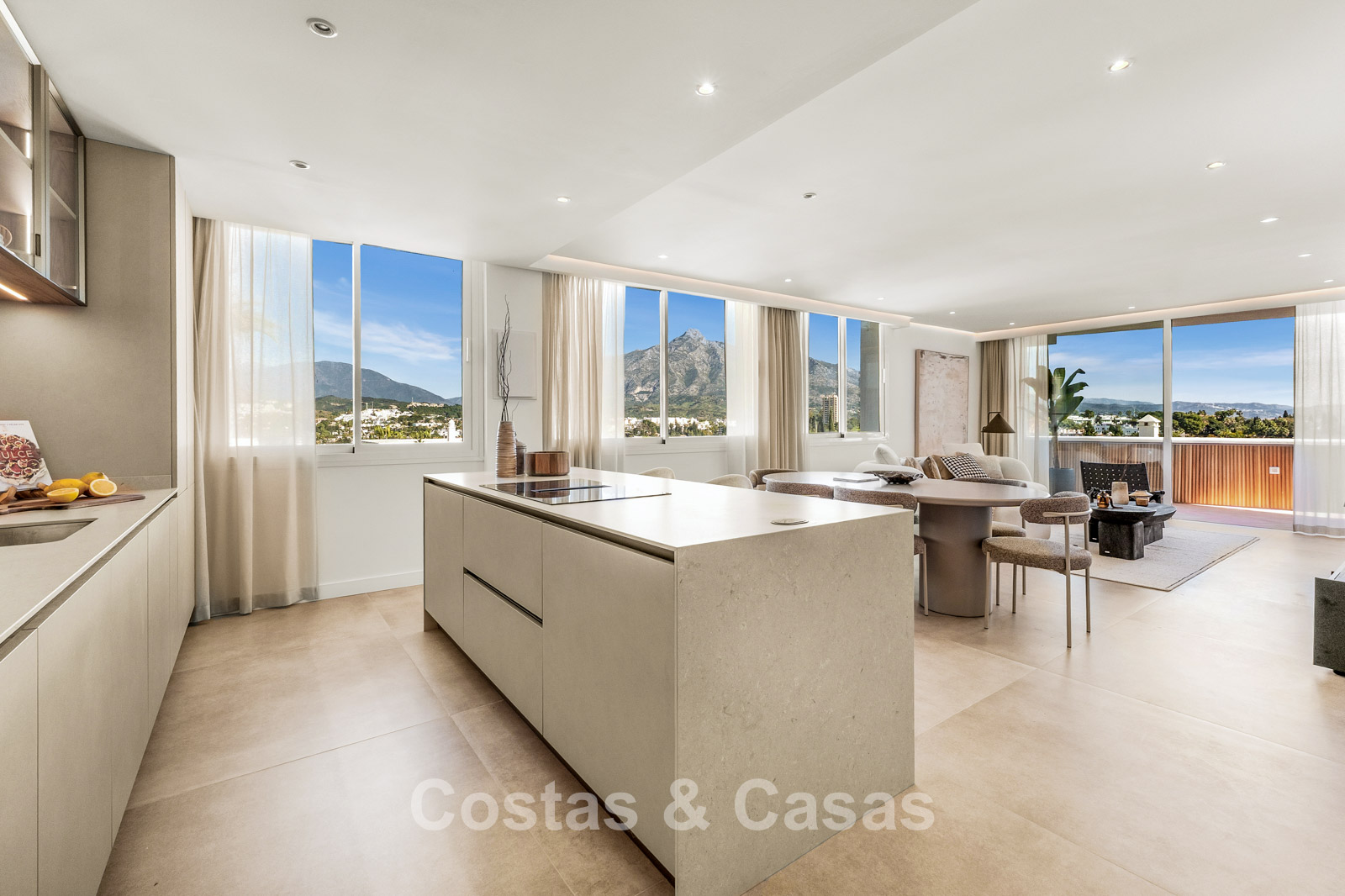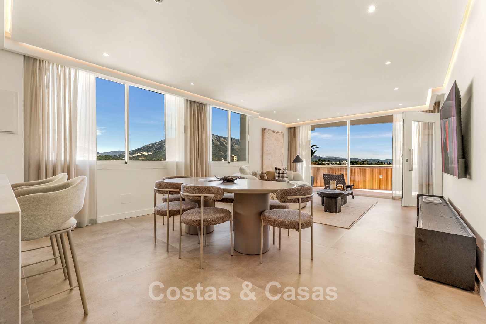 Het absolute pronkstuk is het panoramische uitzicht over de La Concha berg, direct vanuit de leefruimte en het grote terras.