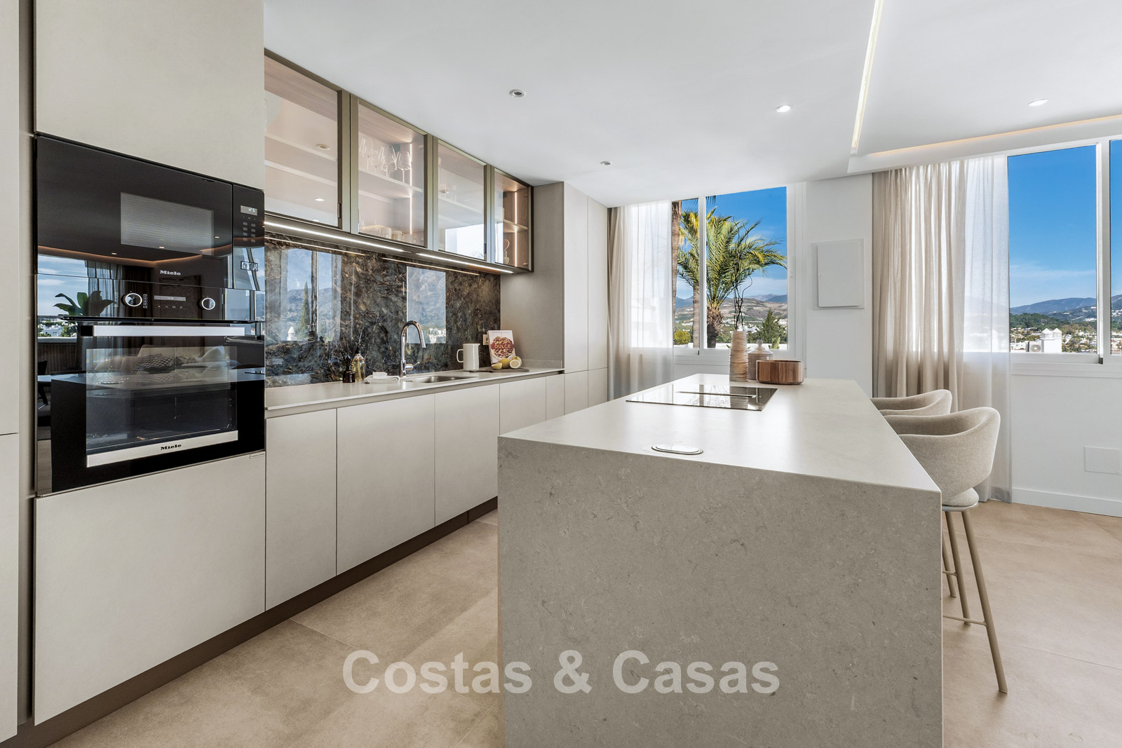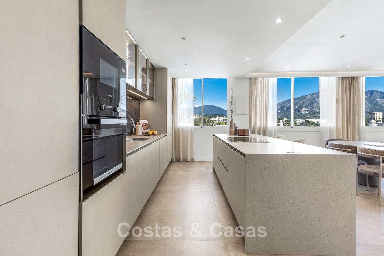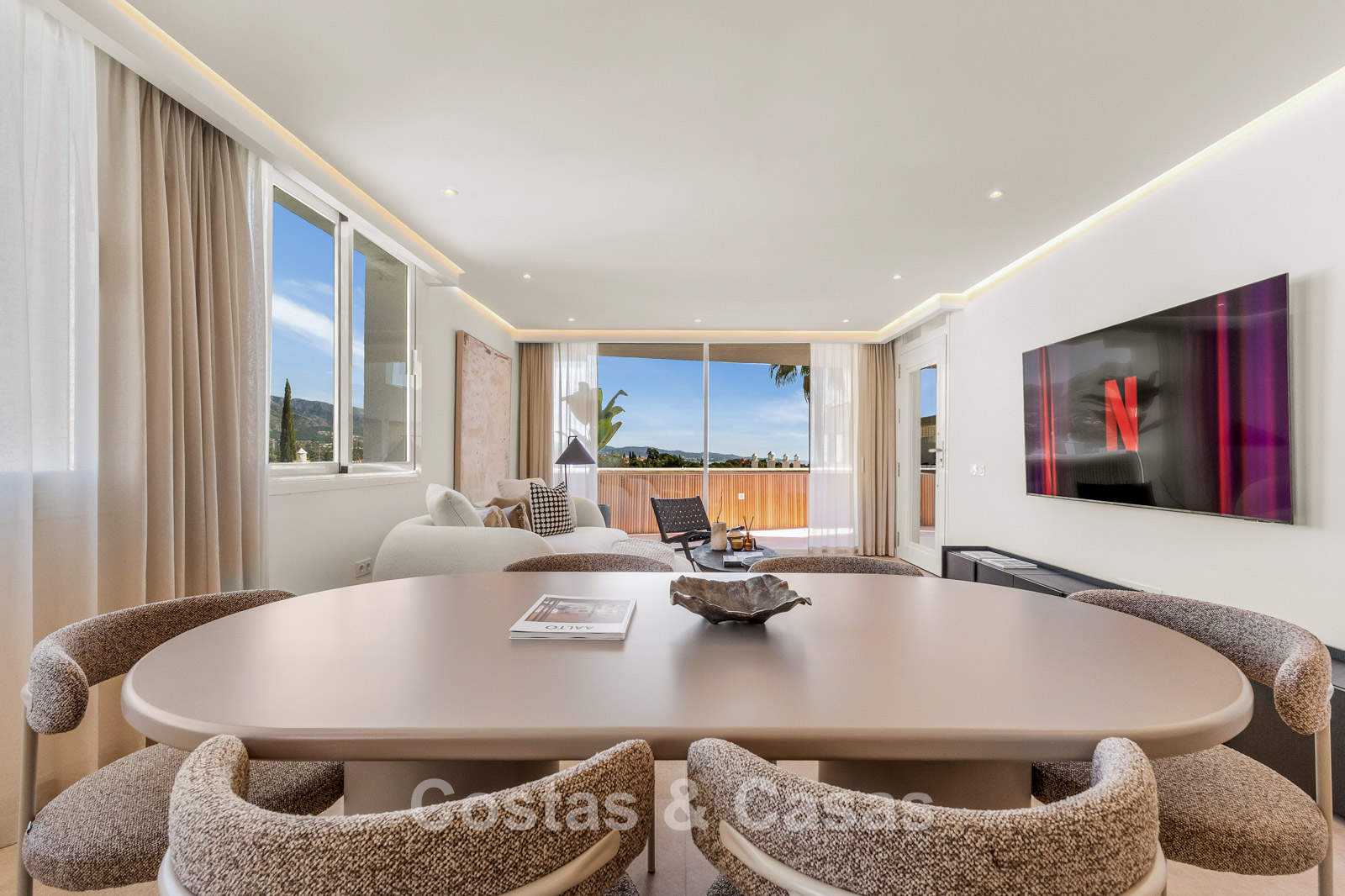 Het absolute pronkstuk is het panoramische uitzicht over de La Concha berg, direct vanuit de leefruimte en het grote terras.