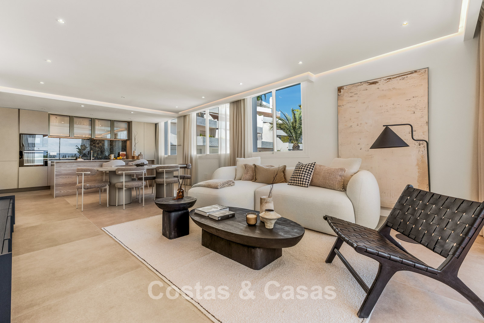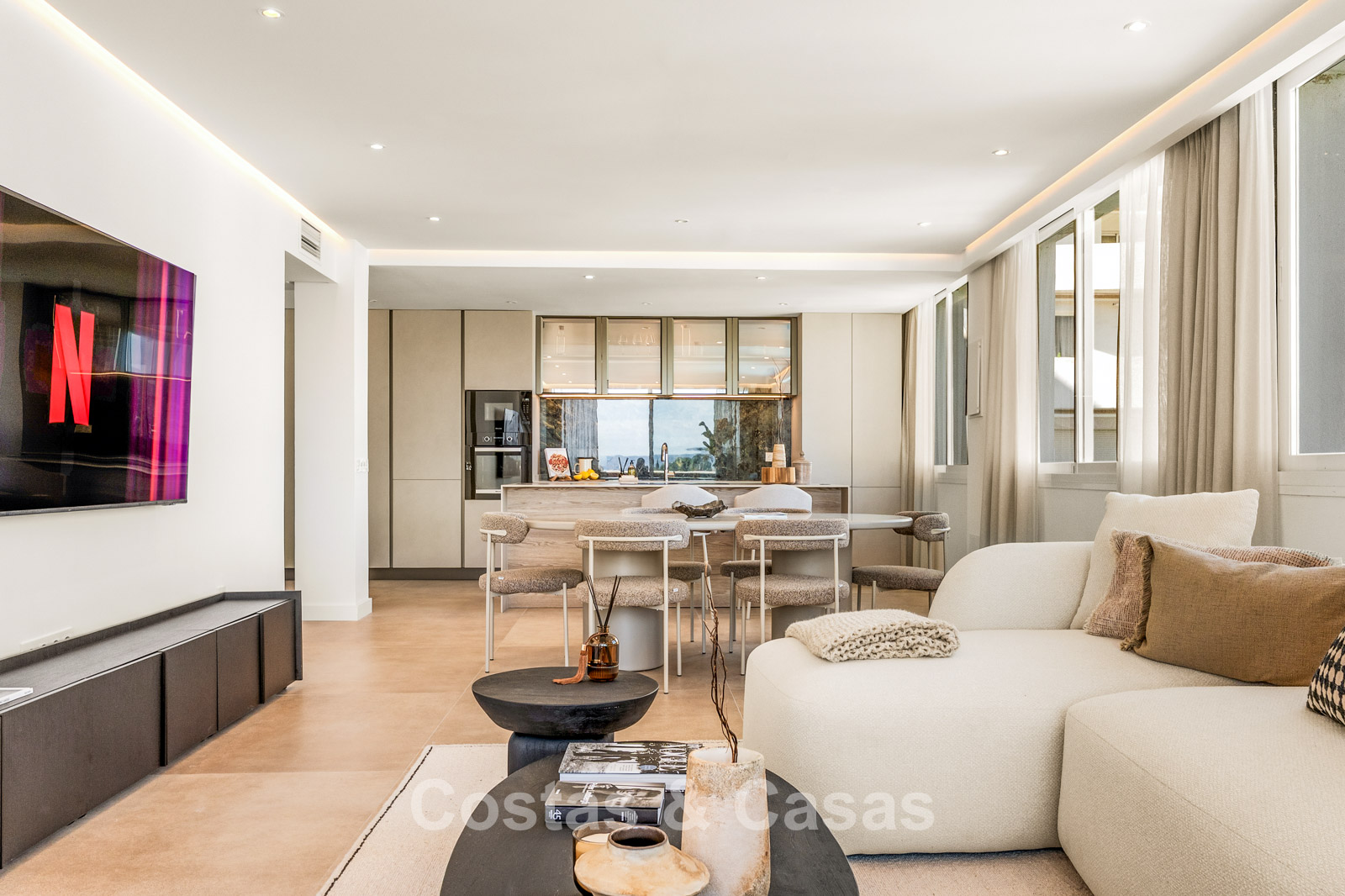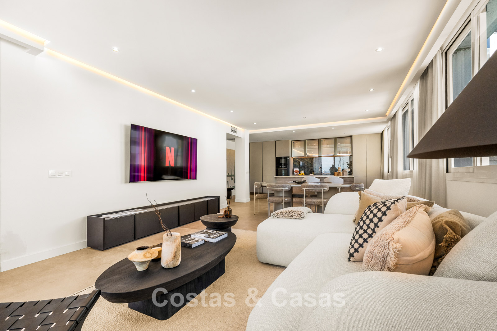 De open-plan leefruimte is licht, ruimtelijk en tot in de puntjes afgewerkt met oog voor detail.