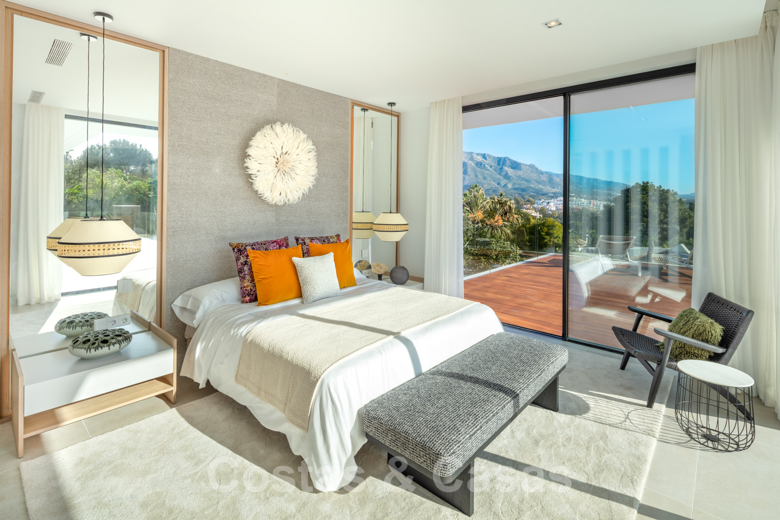 Designvilla in de zeer gewilde woonwijk Las Brisas in Nueva Andalucia met prachtig uitzicht op de La Concha berg in Marbella