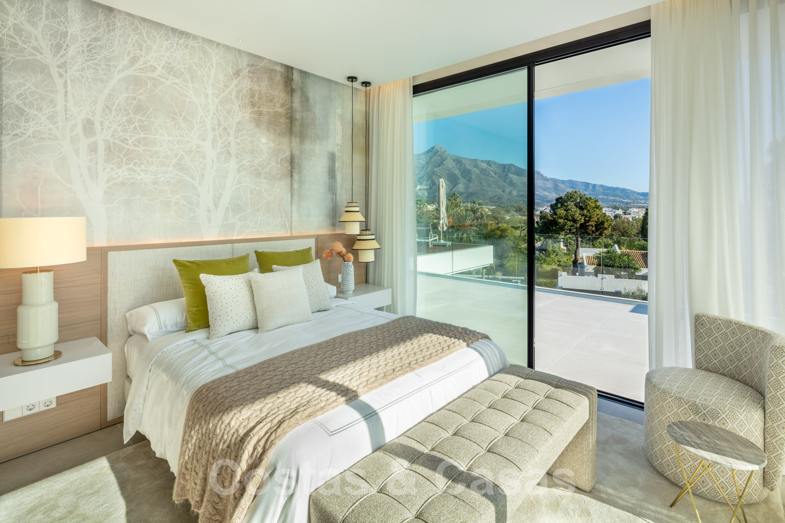 Verfijnde inrichting en gezellig design met natuurlijke materialen en zachte stoffen.