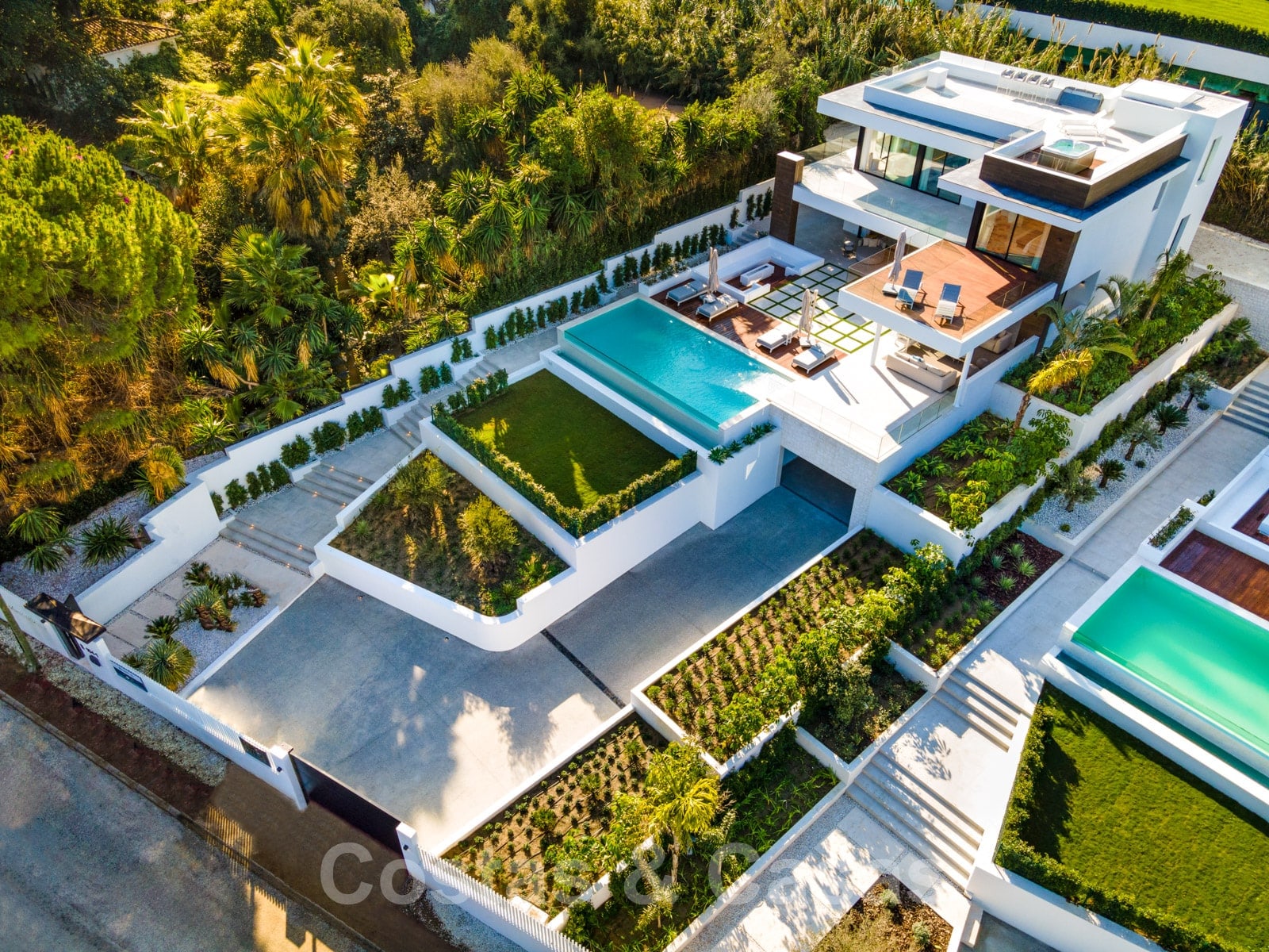 Prachtige trapsgewijze landschapstuin met “inifinity” zwembad