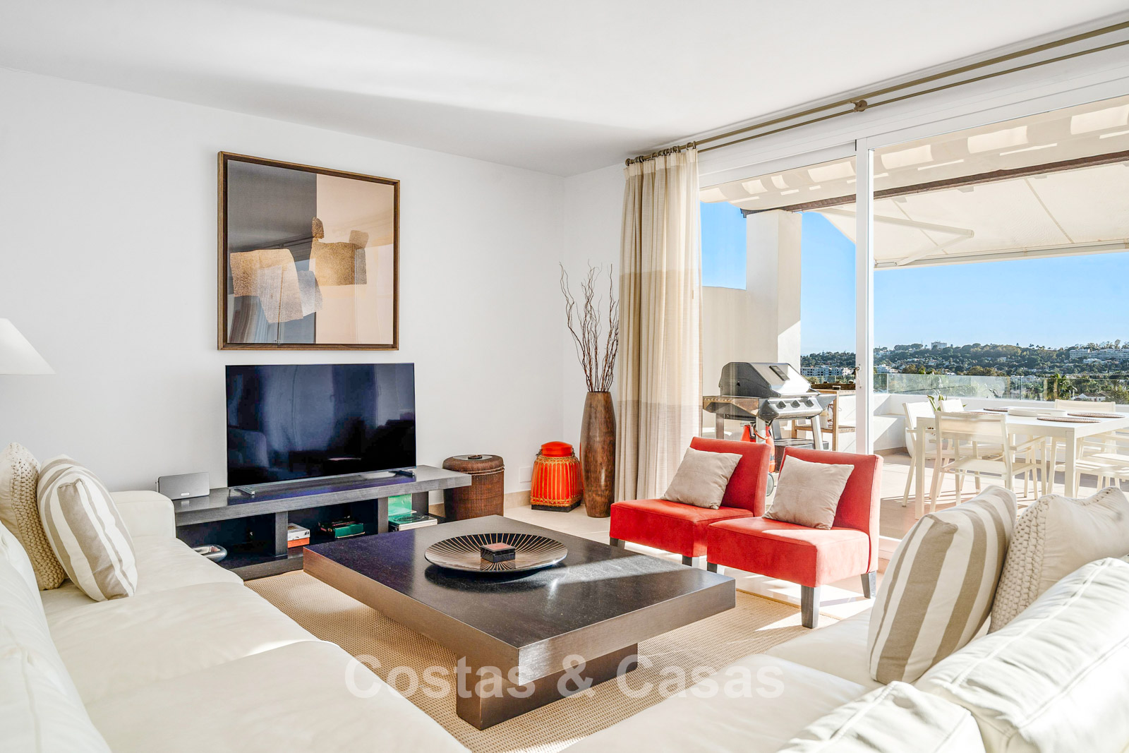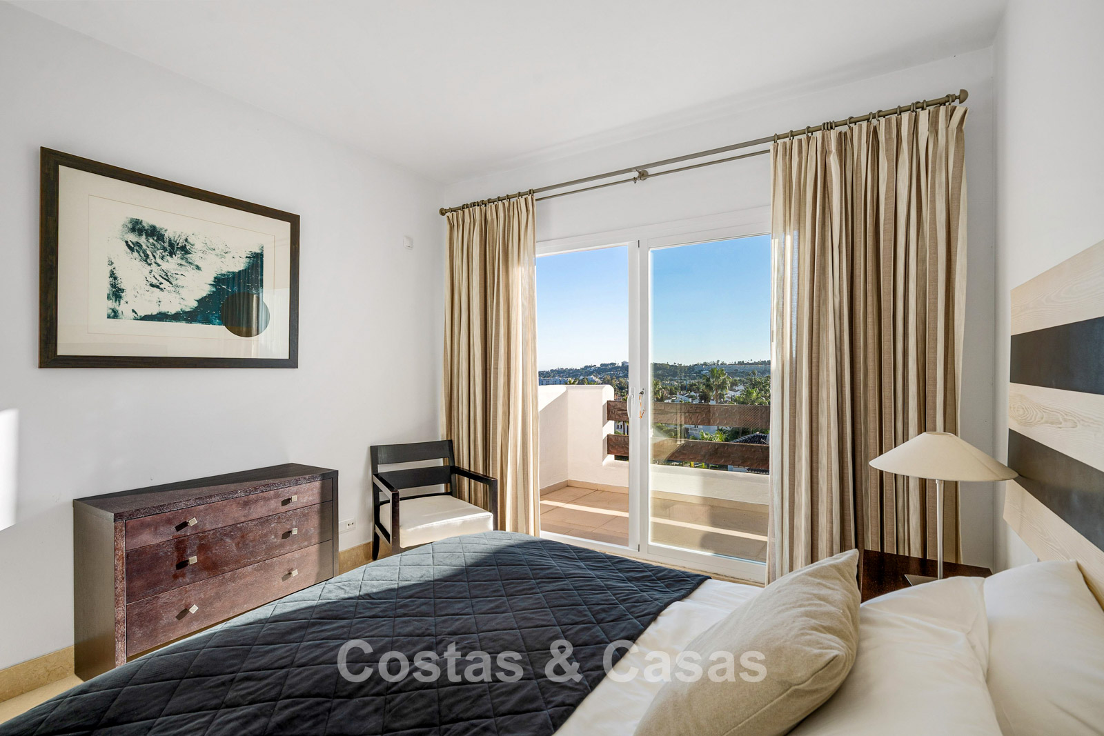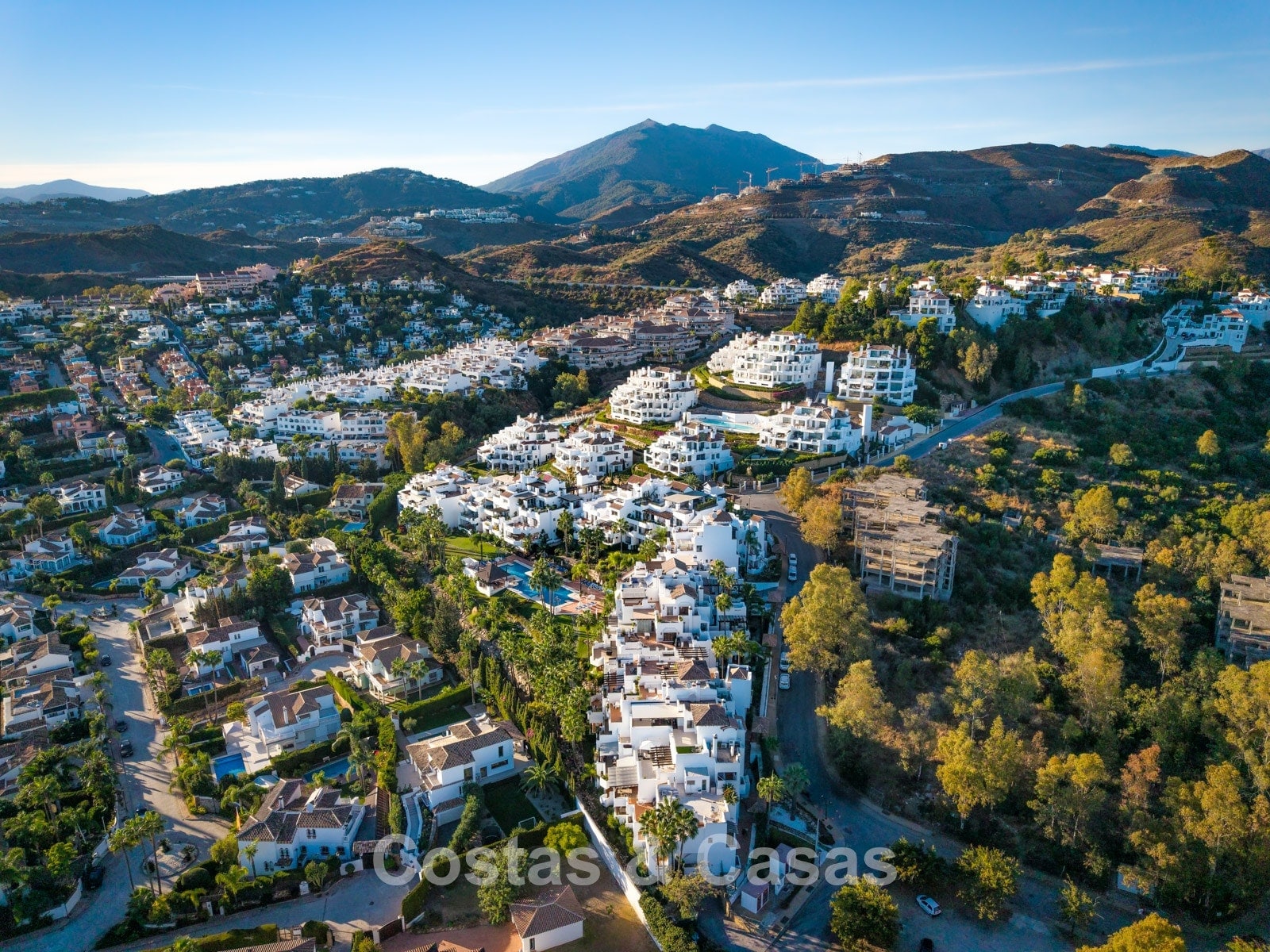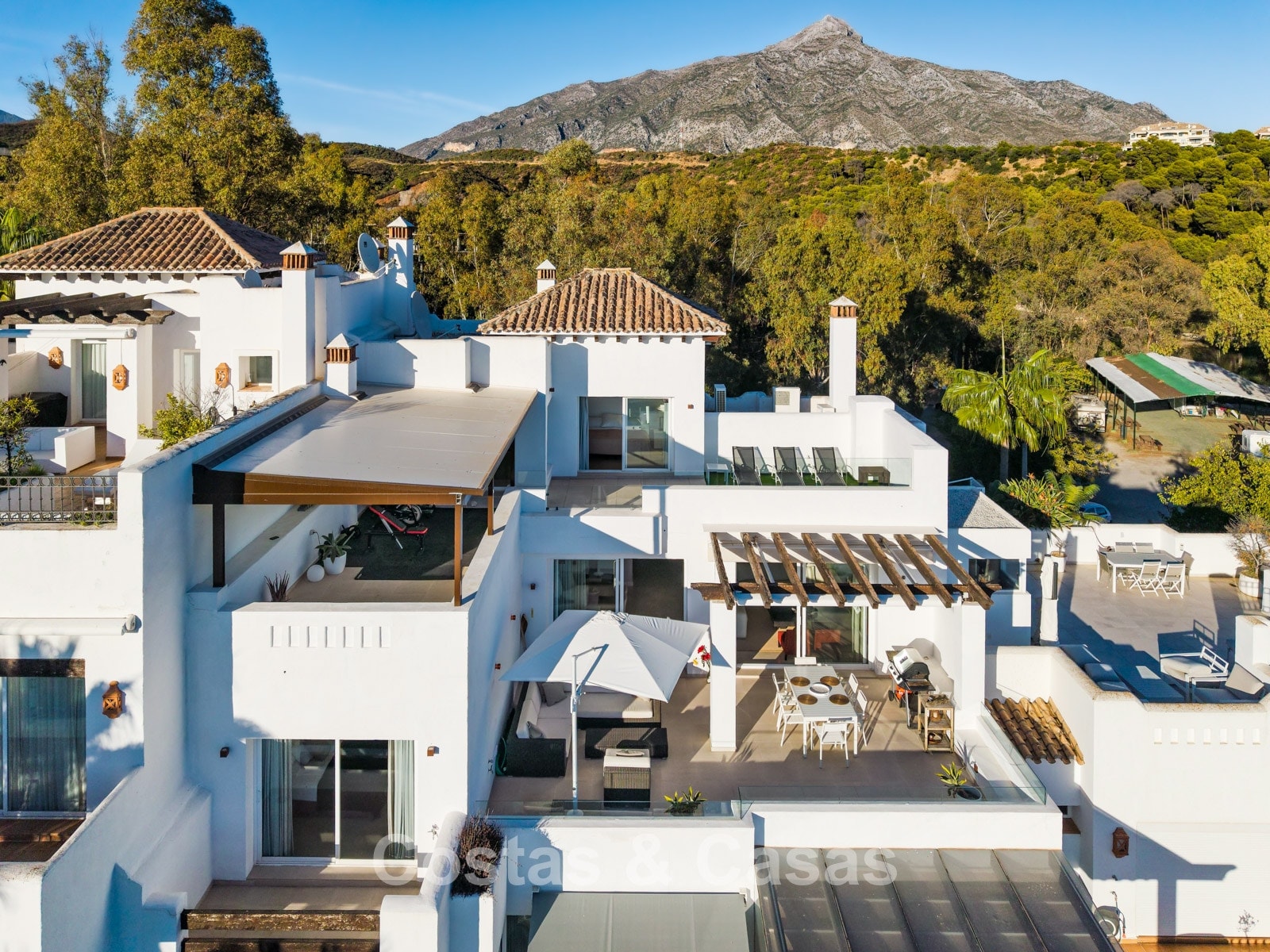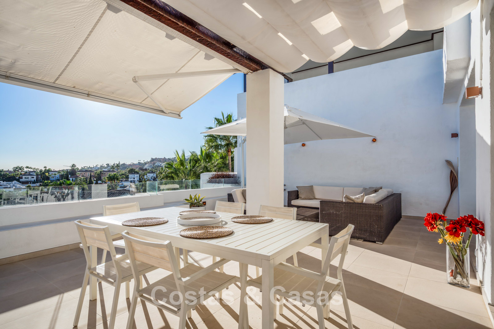 Het uitzicht is adembenemend en strekt zich uit over de vallei van Nueva Andalucía, de iconische La Concha-berg en de Middellandse Zee.