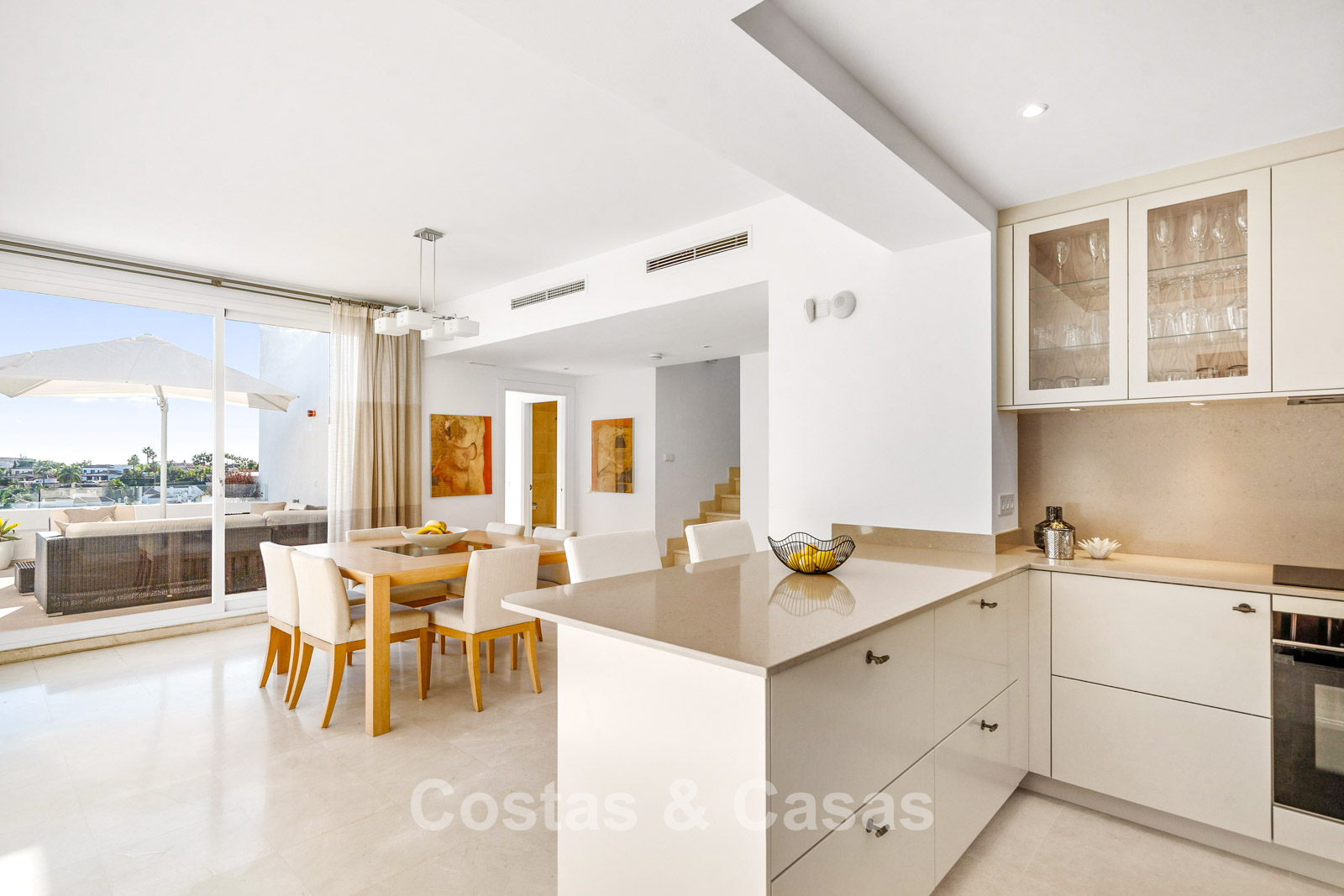 Dit elegante duplex penthouse is een toonbeeld van moderne mediterrane luxe.