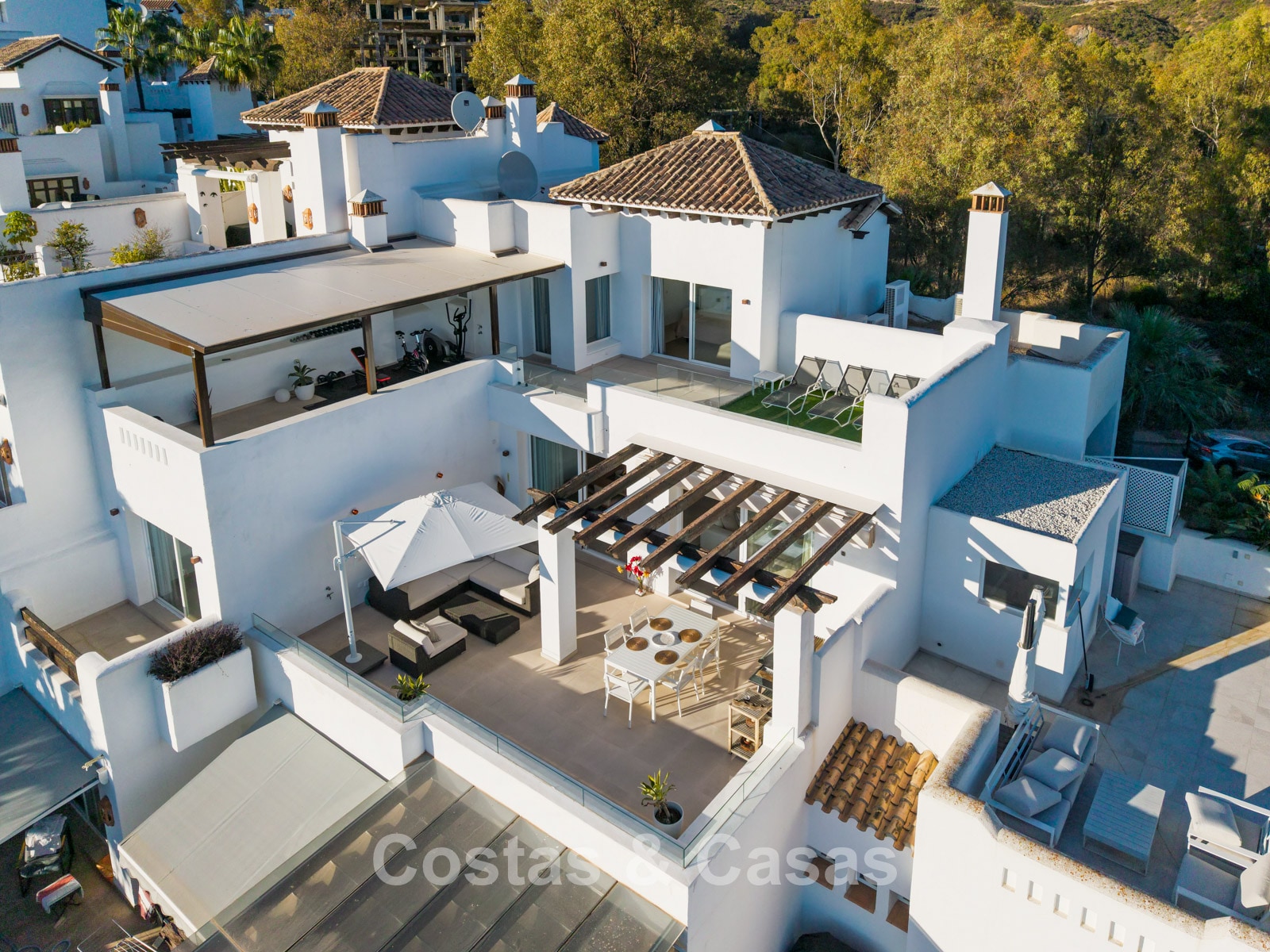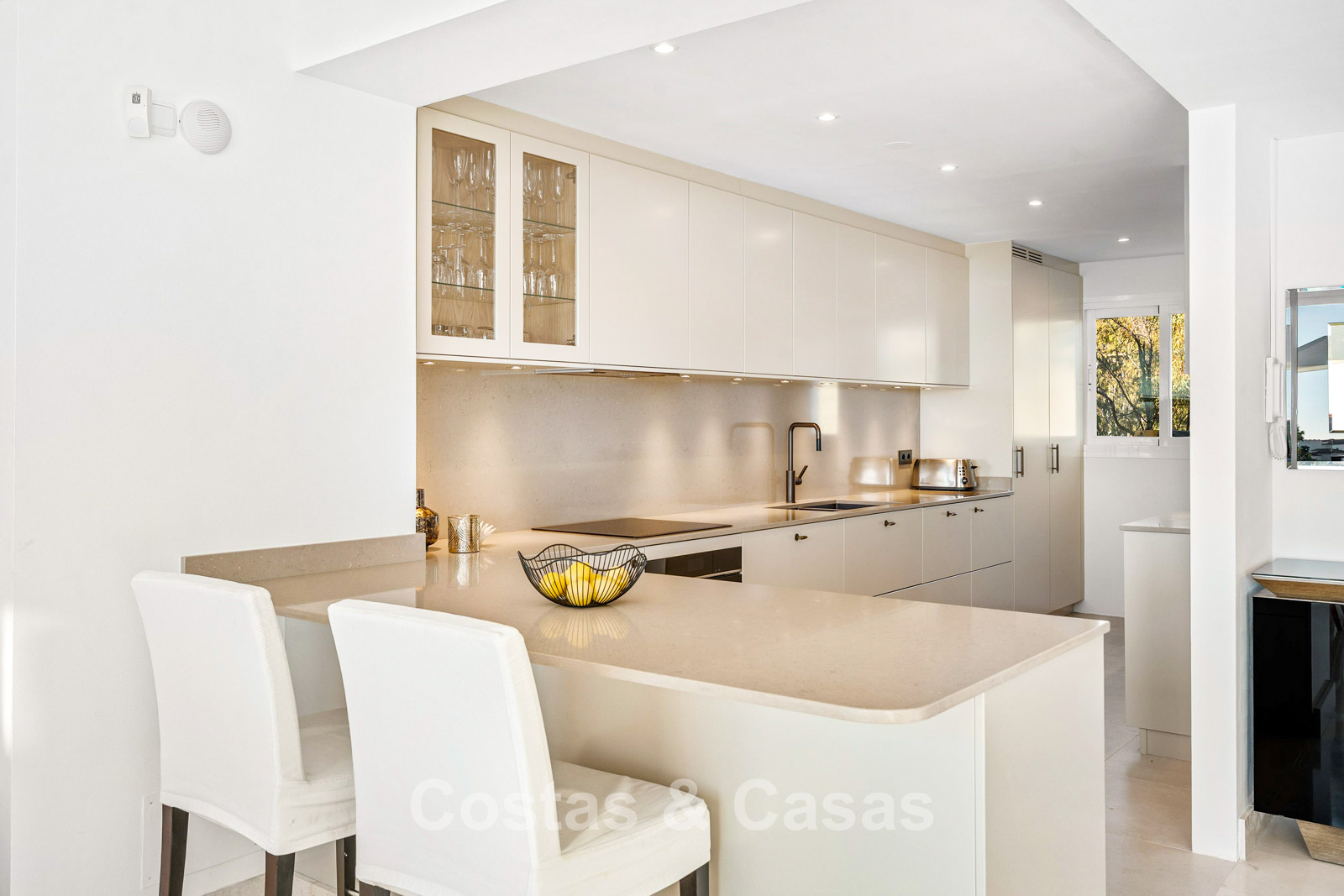 Alle essentiële voorzieningen, zoals winkels, restaurants en internationale scholen, liggen op korte rijafstand, net als Puerto Banús, dat in 8 tot 10 minuten bereikbaar is.