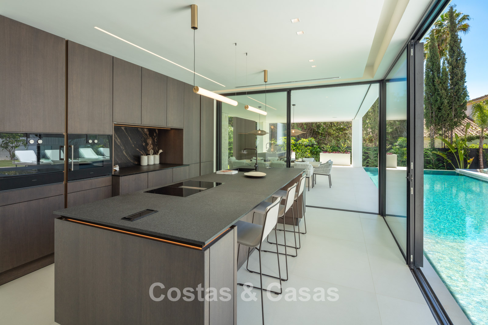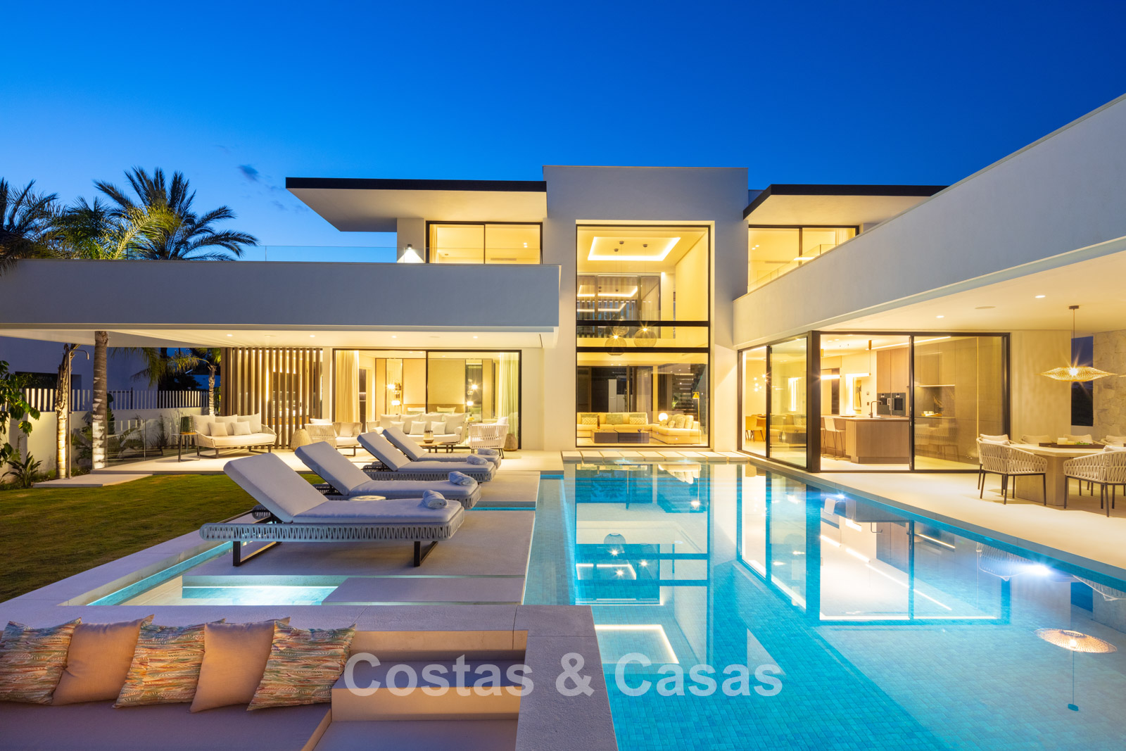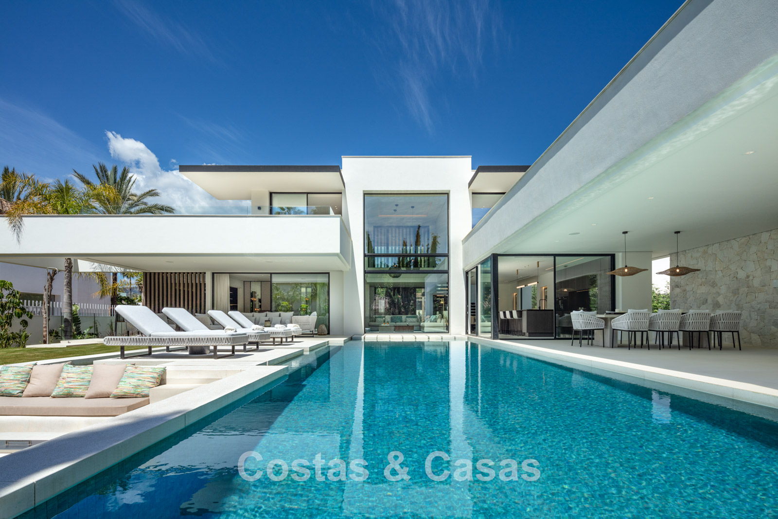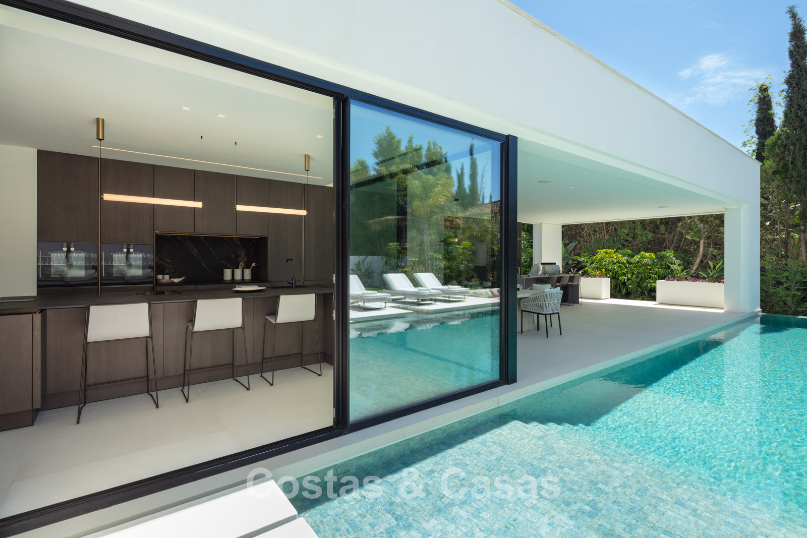 Het verwarmd zwembad is de absolute eyecatcher van deze villa, omringd door stijlvolle ligbedden en een verzonken lounge waar je in alle luxe kan ontspannen.