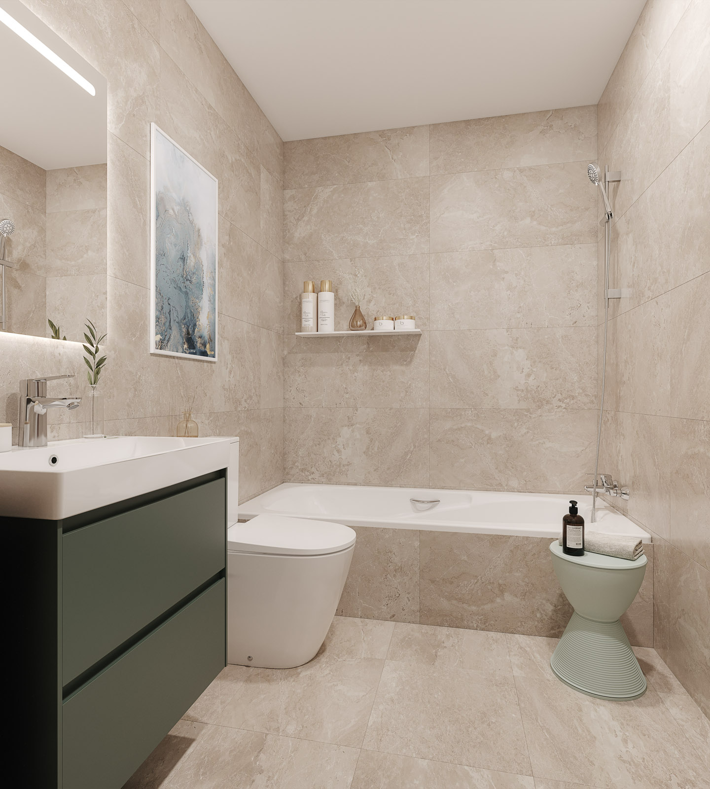 De urbanisatie biedt bovendien tropische tuinen, twee zwembaden en een uitgeruste fitnessruimte.