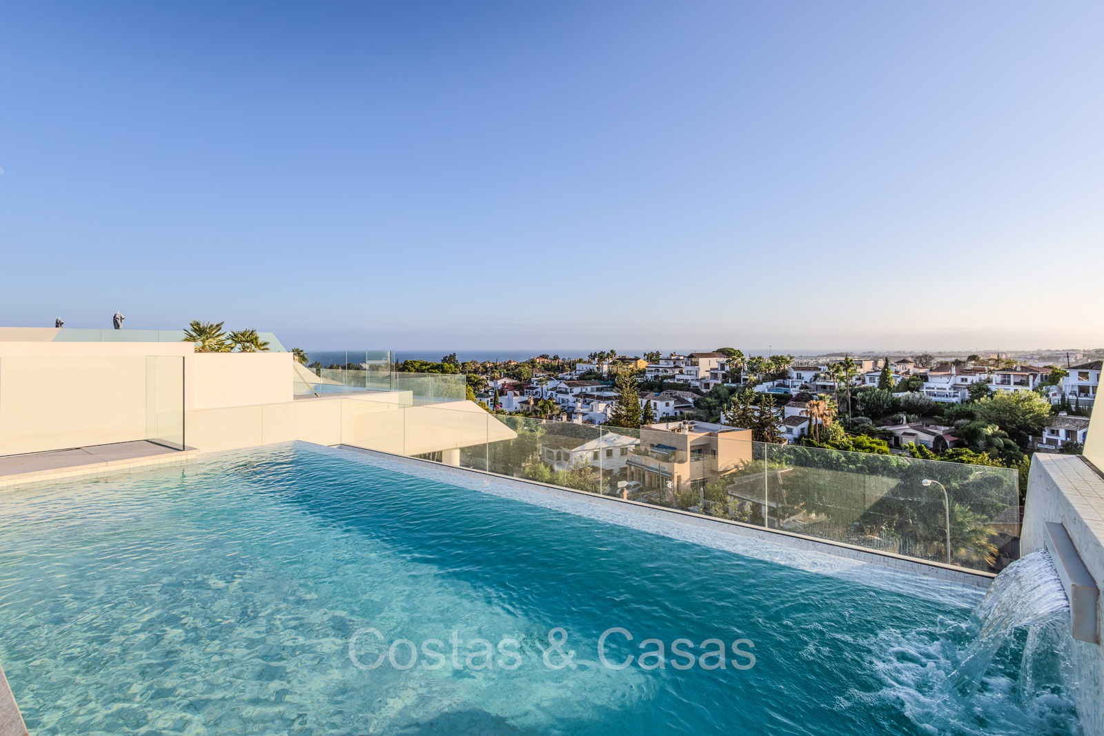 • Dakterras met overloopzwembad.