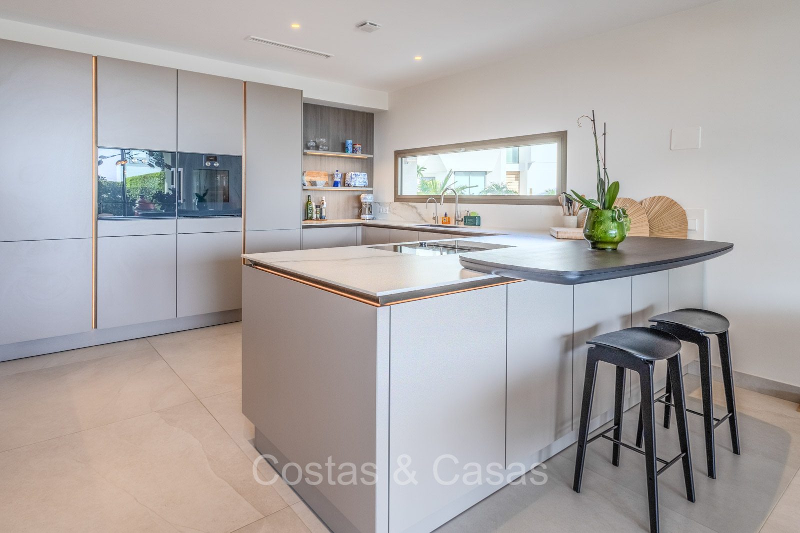 Gepersonaliseerde woonkeuken, uitgerust met hoogwaardige toestellen en een ontbijtbar.