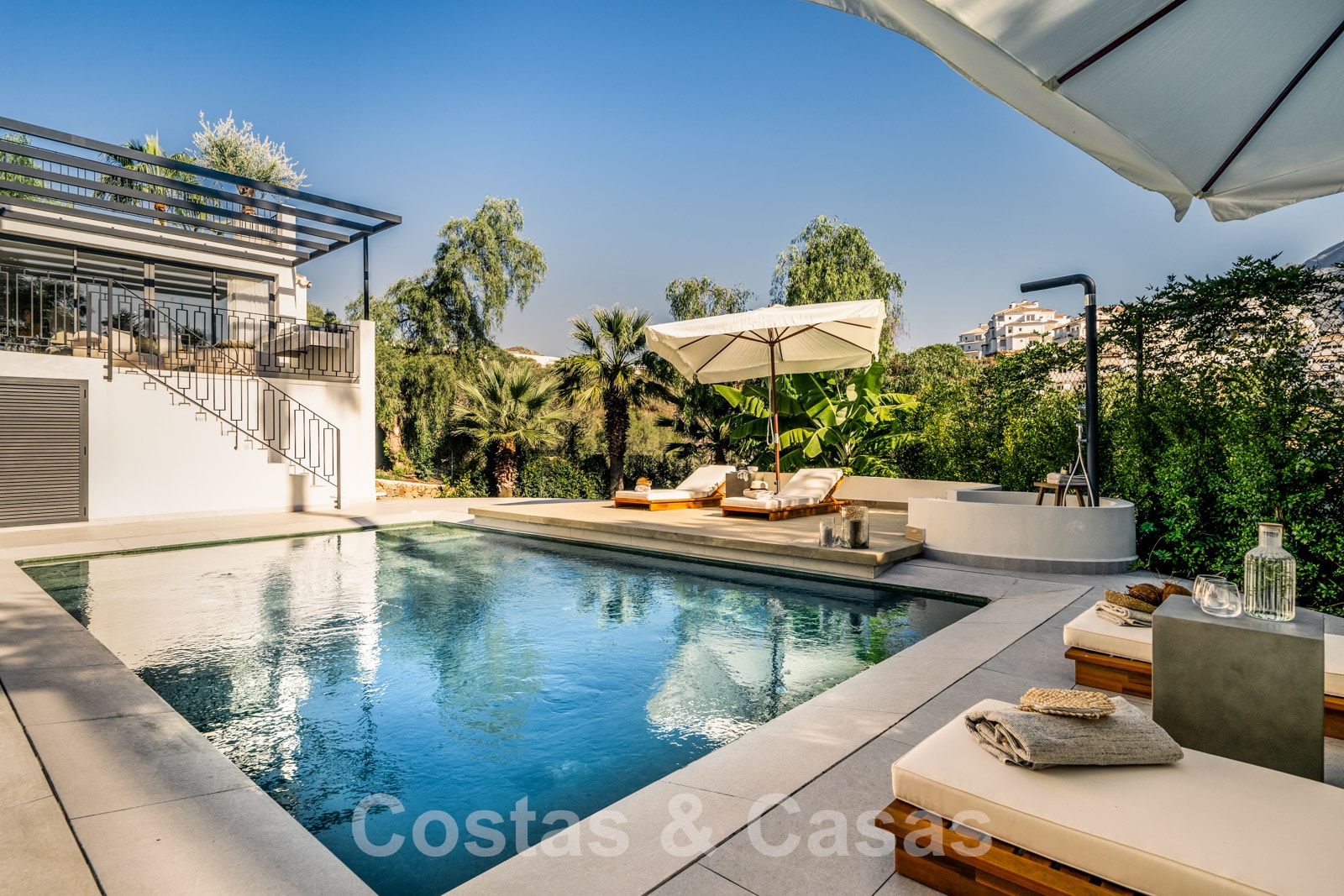 Op slechts een paar minuten afstand van Puerto Banus’ wereldberoemde jachthaven en van Marbella’s Golden Mile, waar je een overvloed aan luxe boetieks, goede restaurants, luxe strandclubs en recreatiefaciliteiten kan terugvinden.