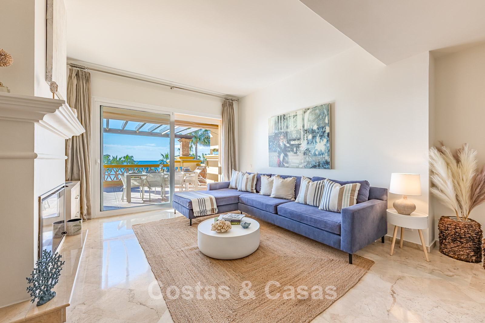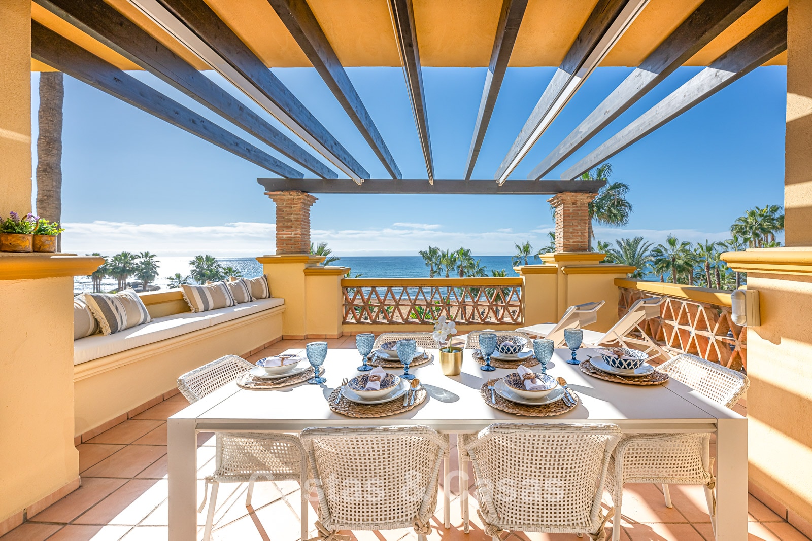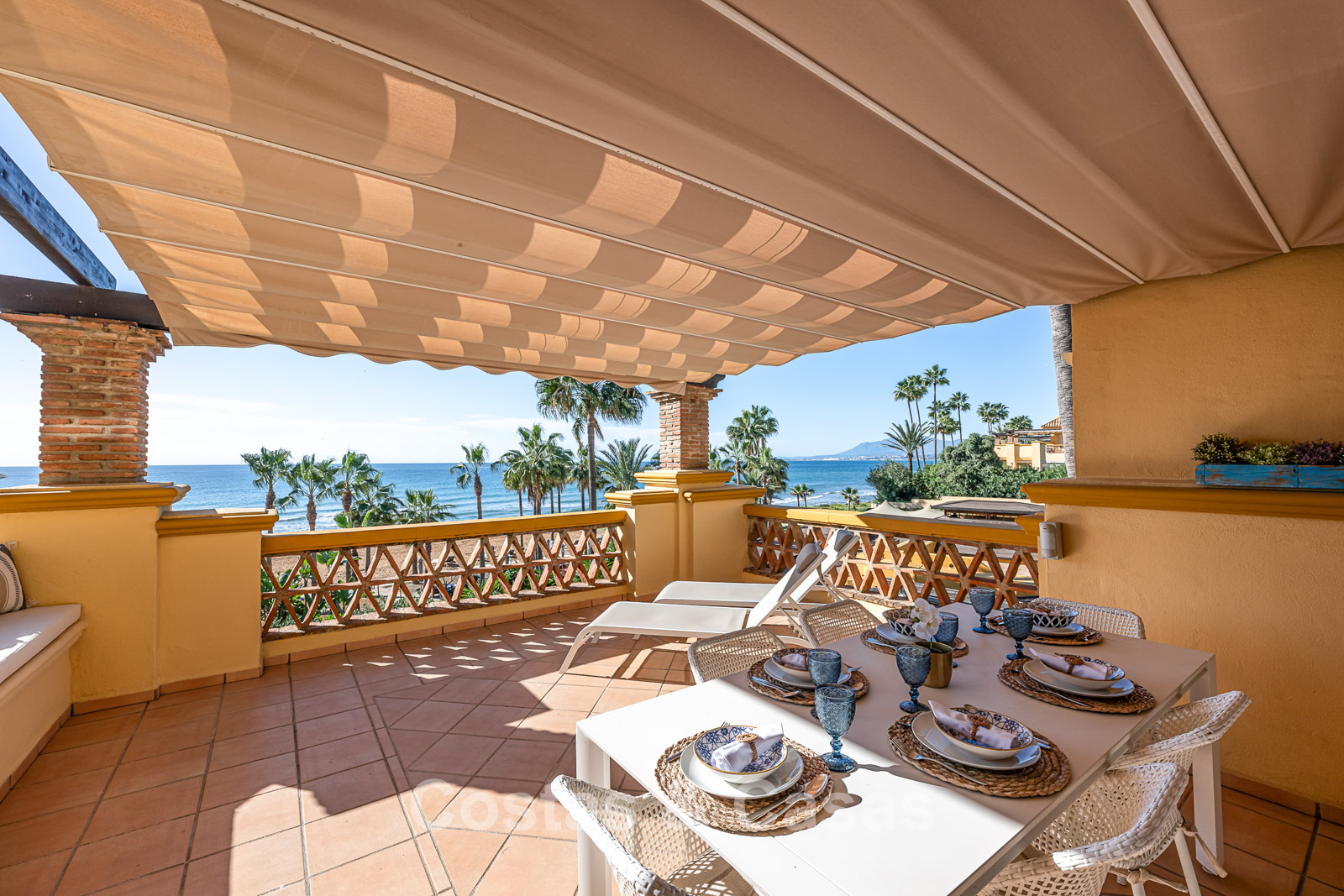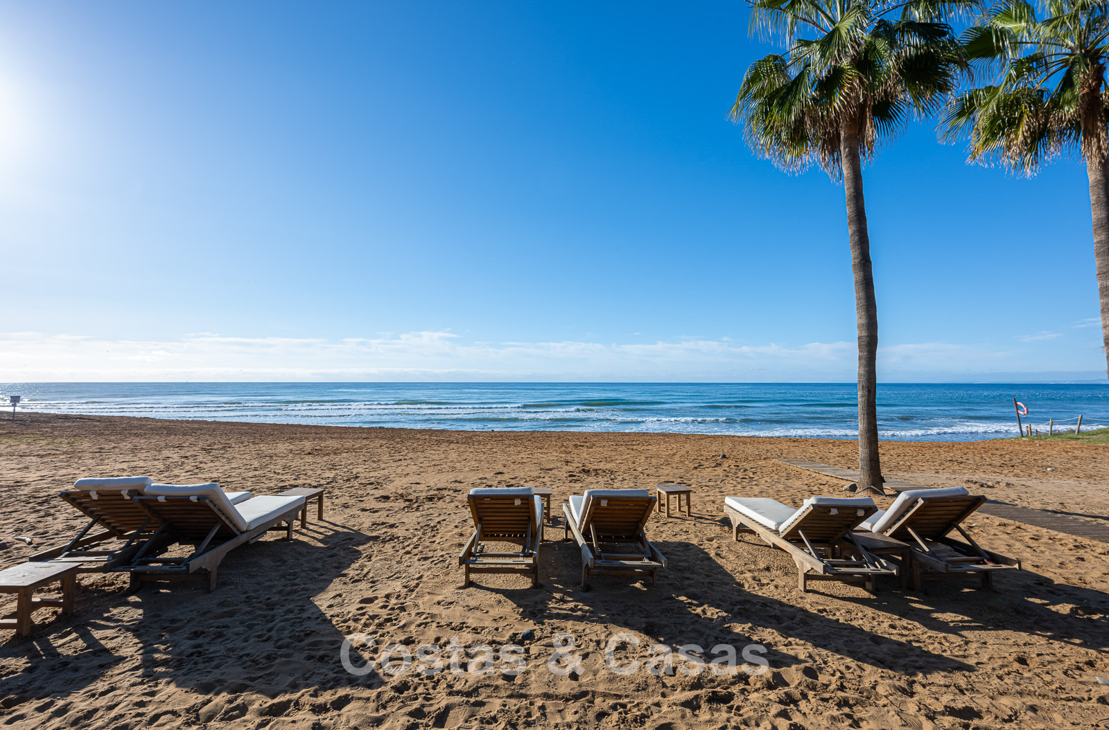 Eerstelijns strandappartement met zeezicht te koop in Oost Marbella