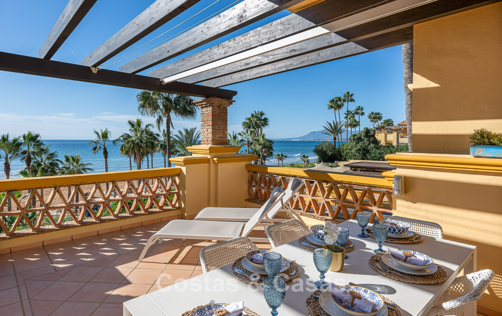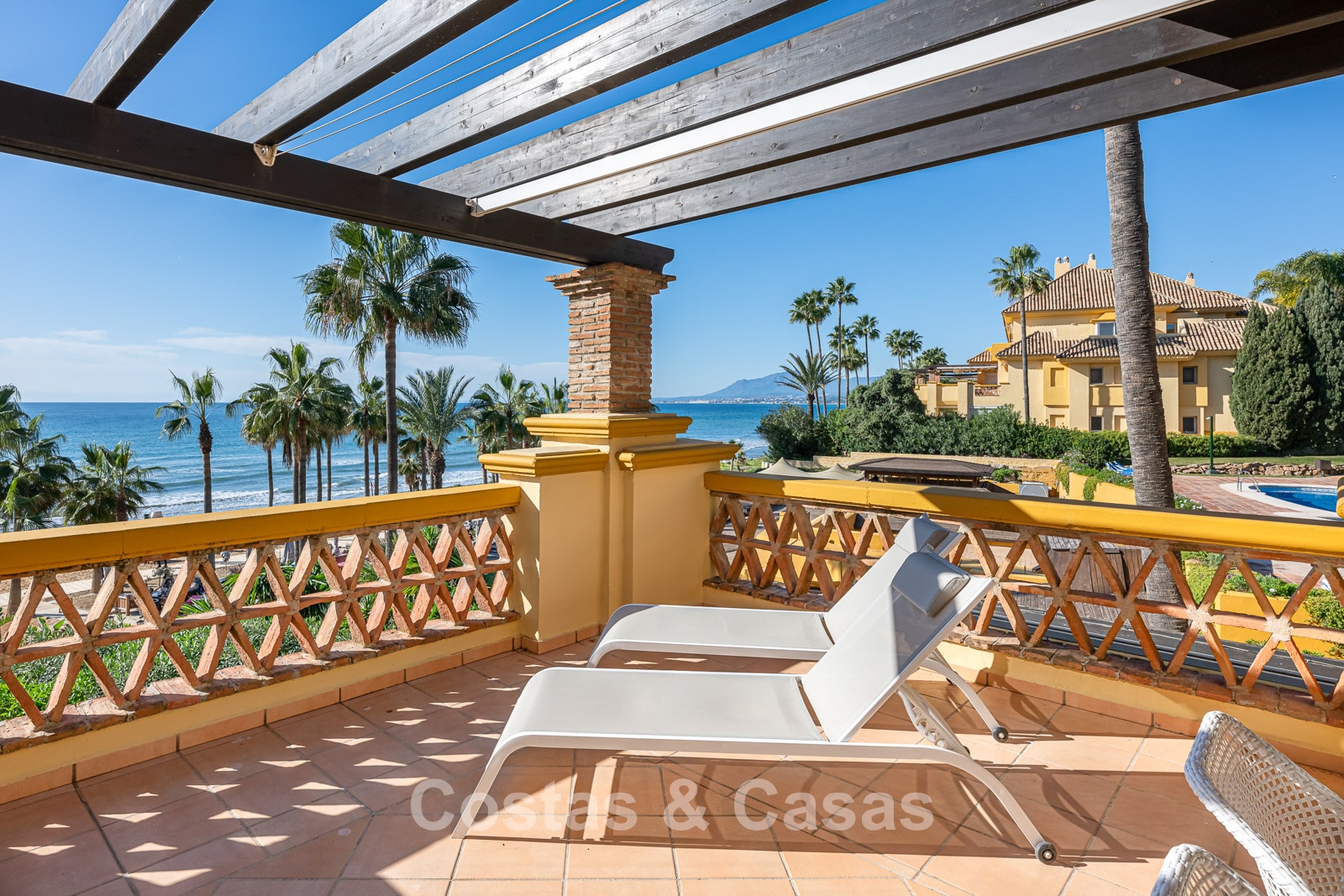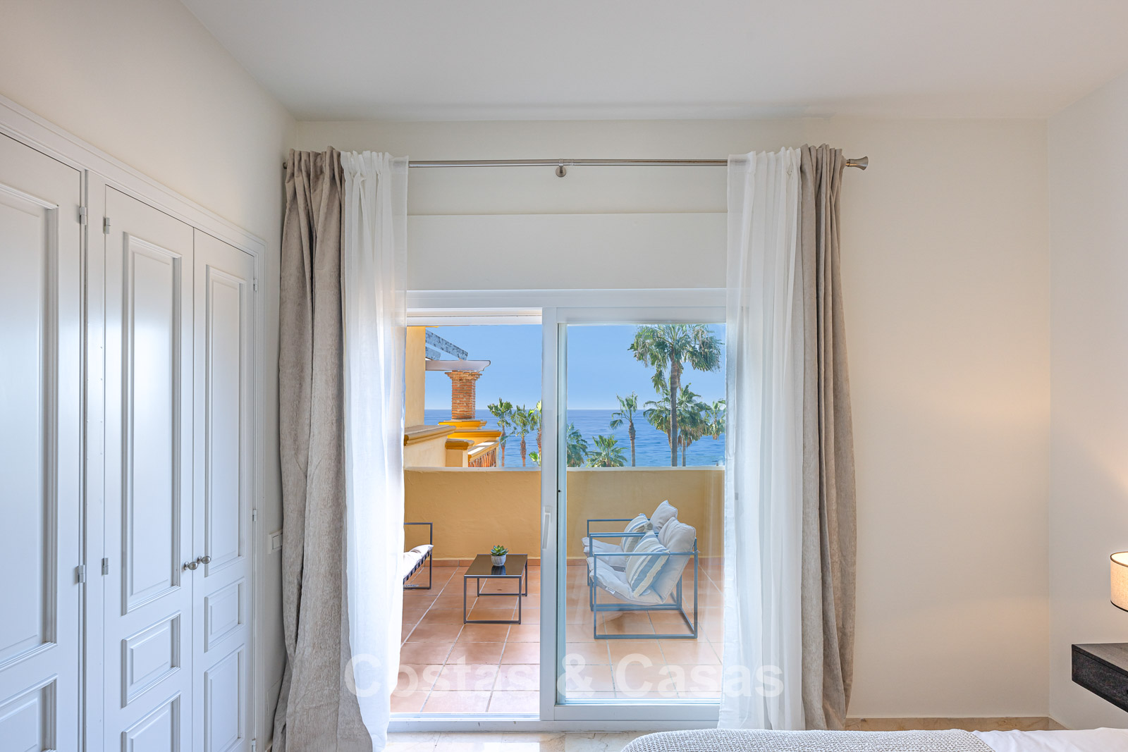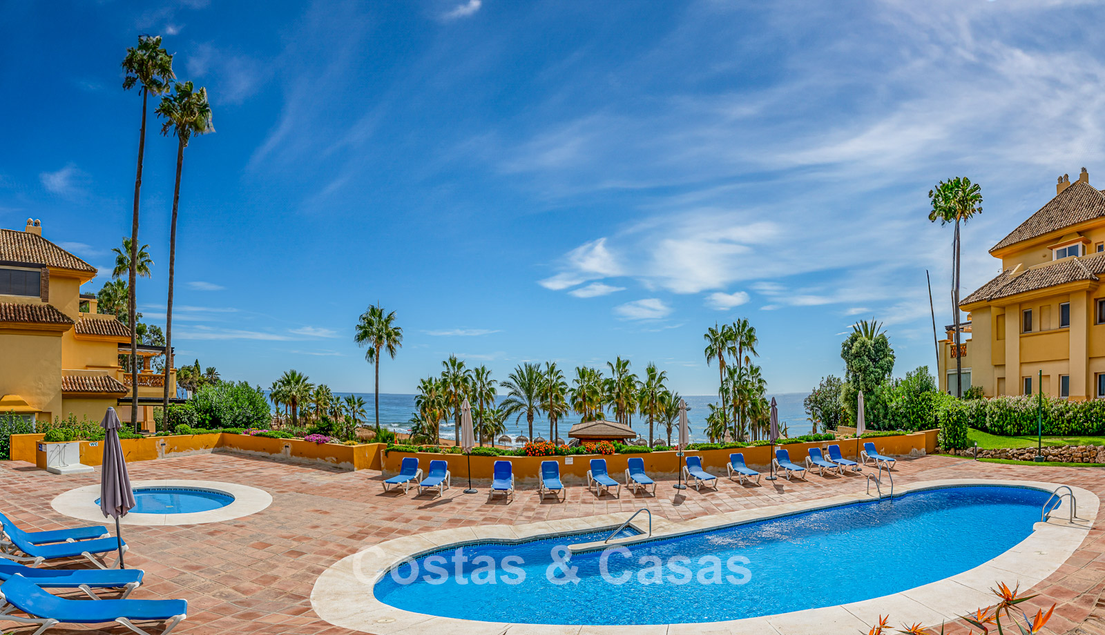 Eerstelijns strandappartement met zeezicht te koop in Oost Marbella