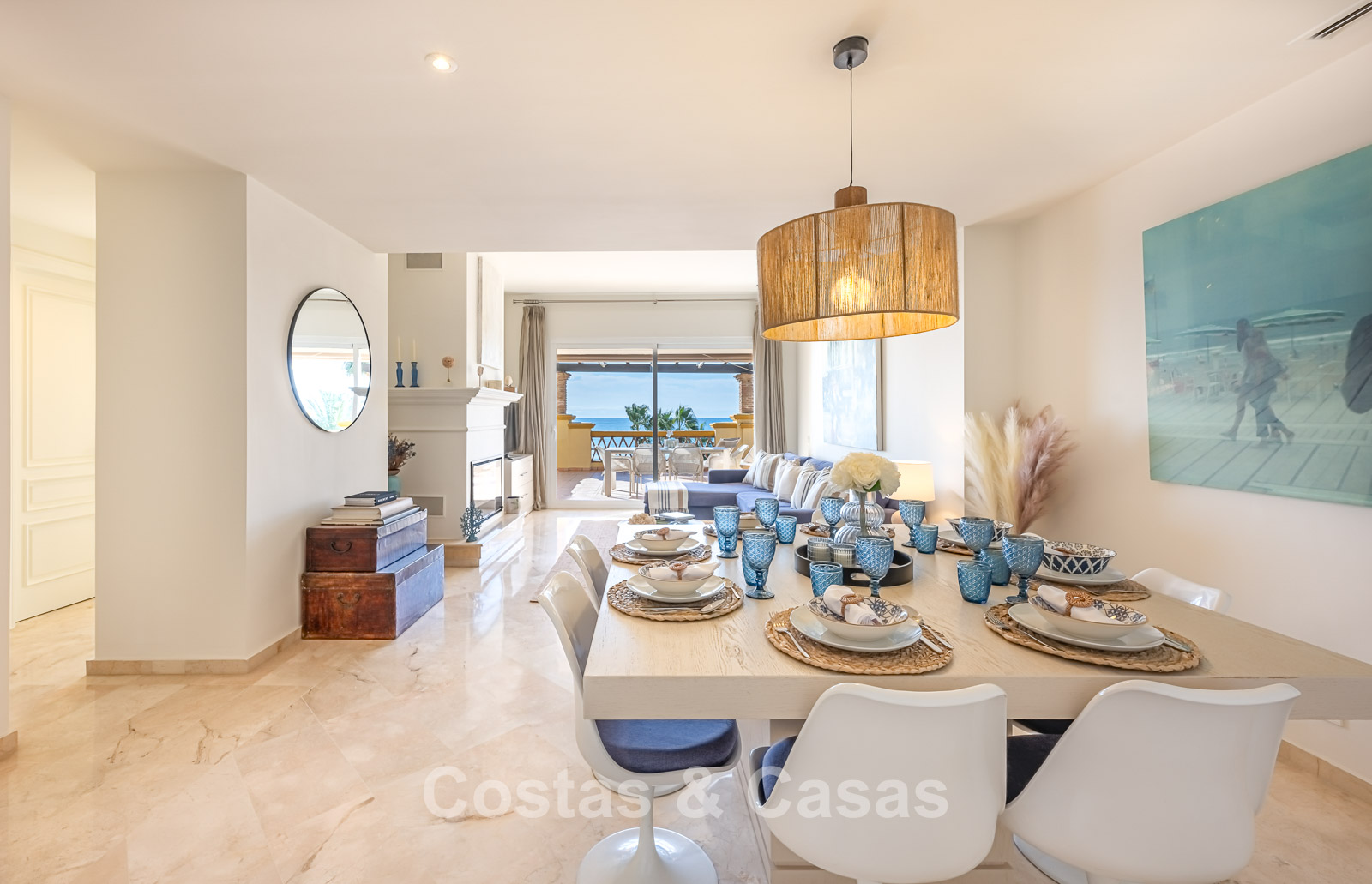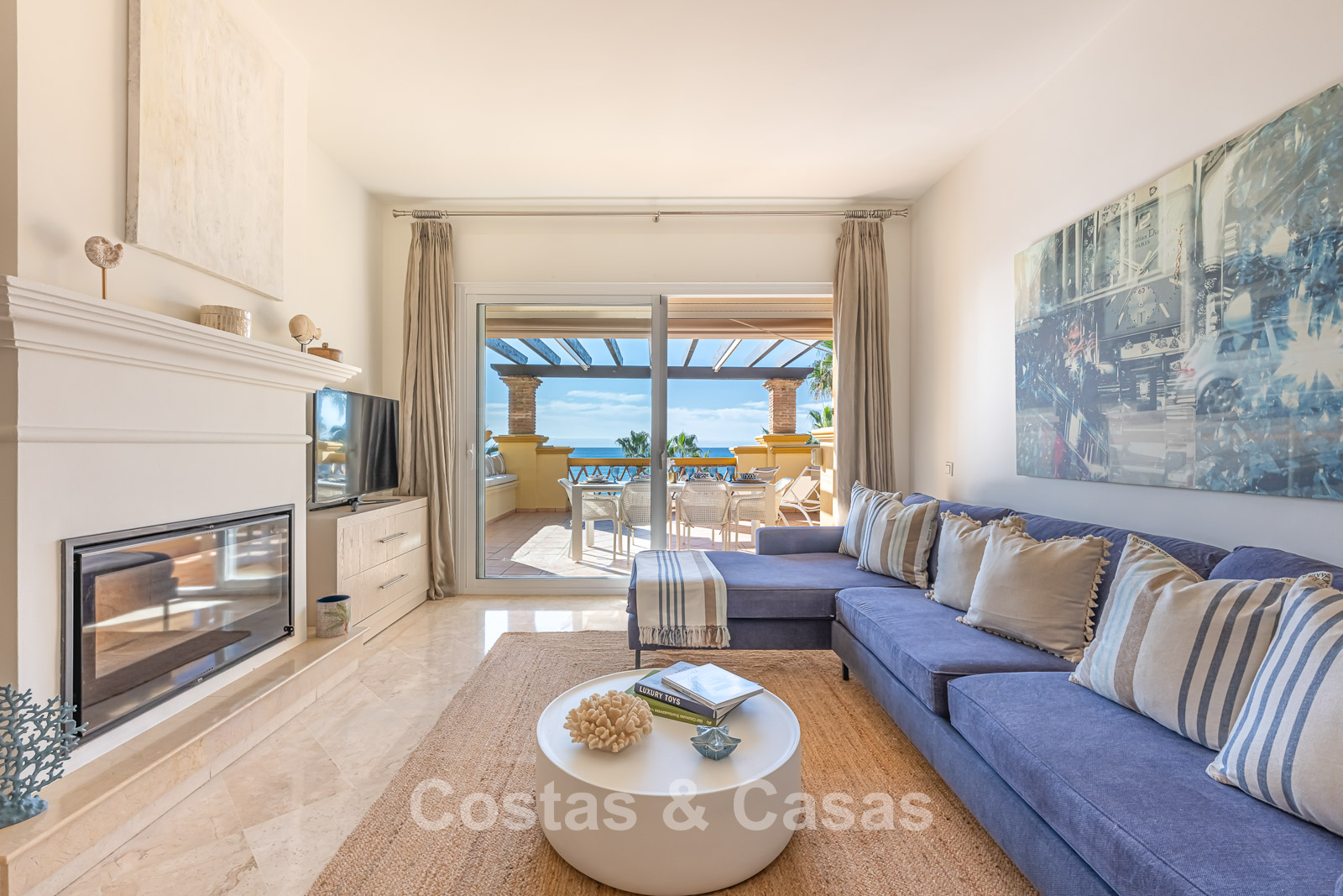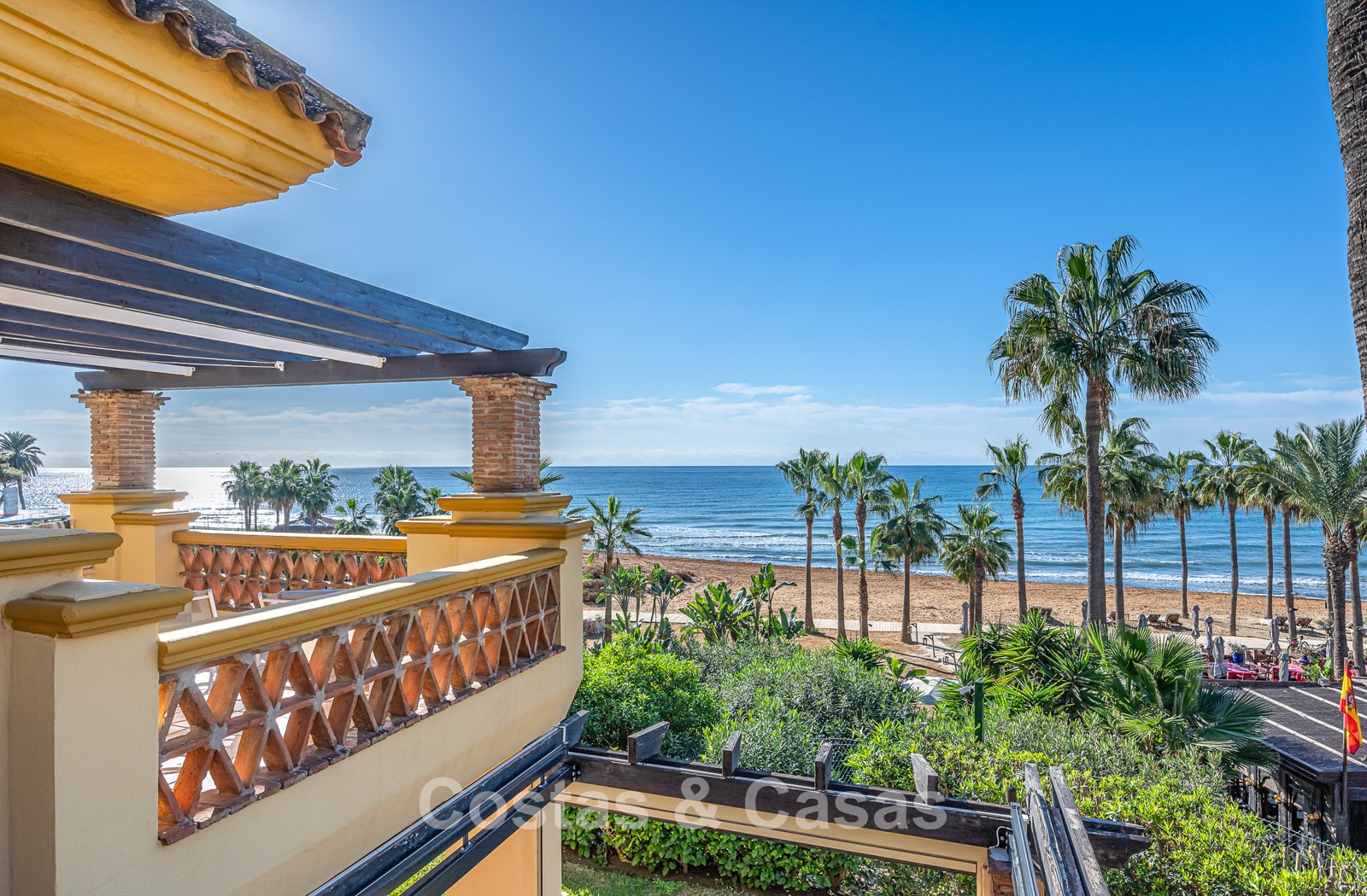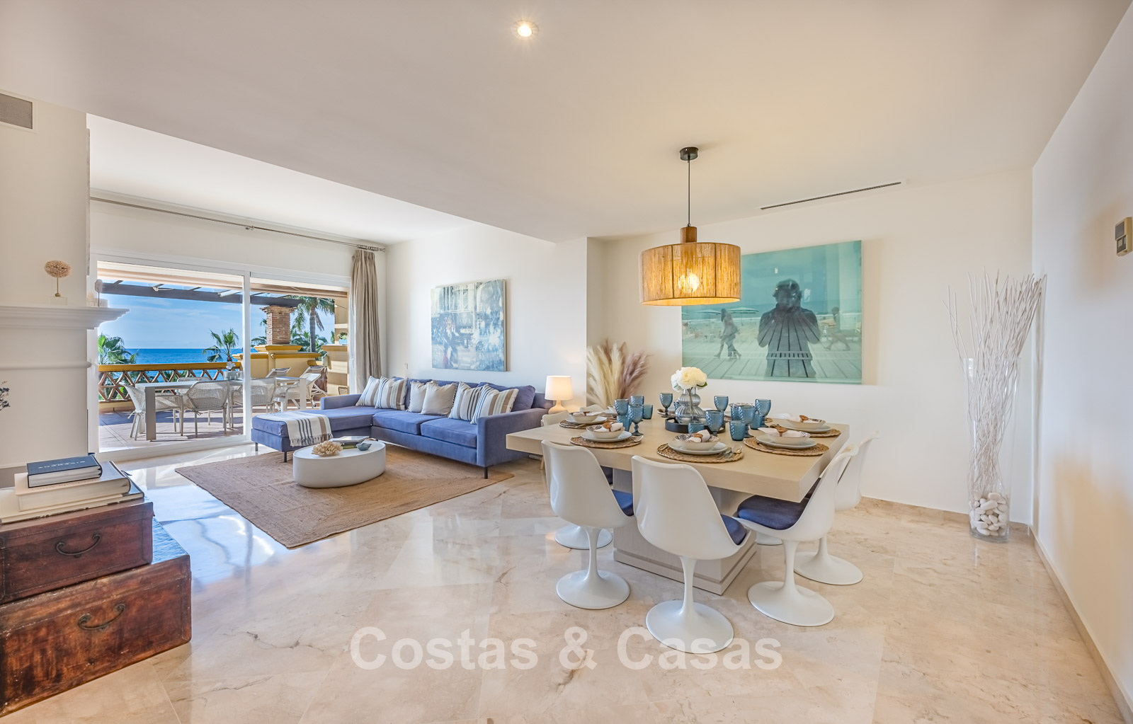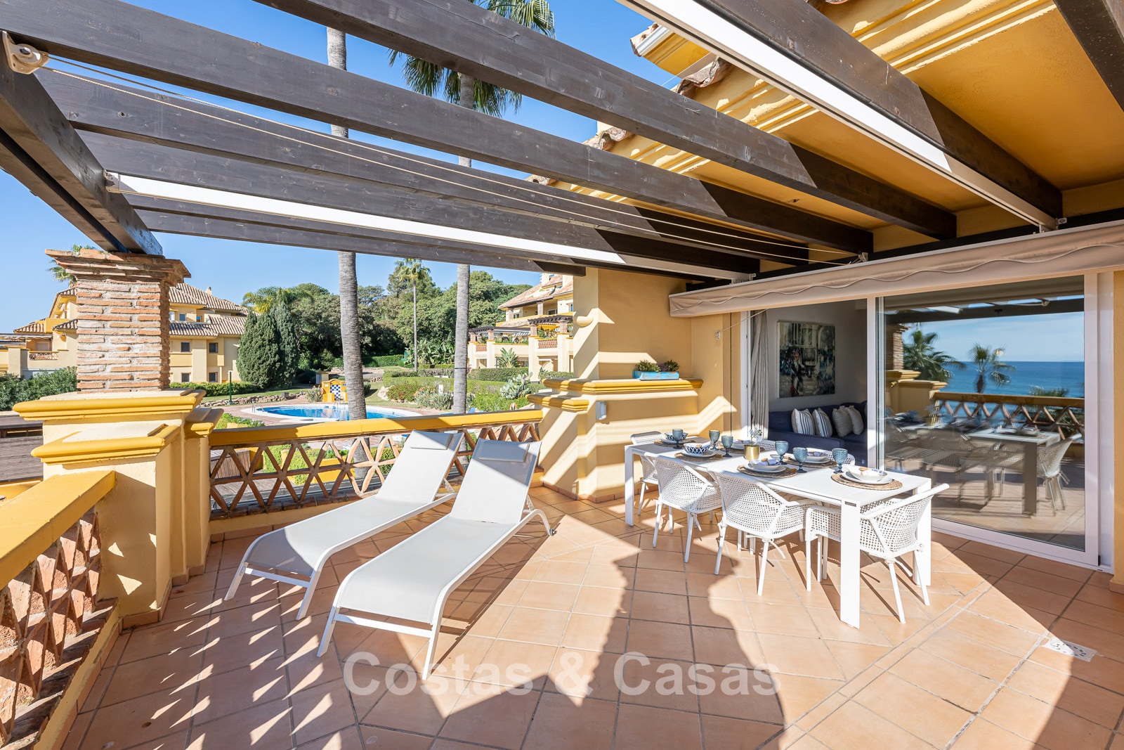 Eerstelijns strandappartement met zeezicht te koop in Oost Marbella