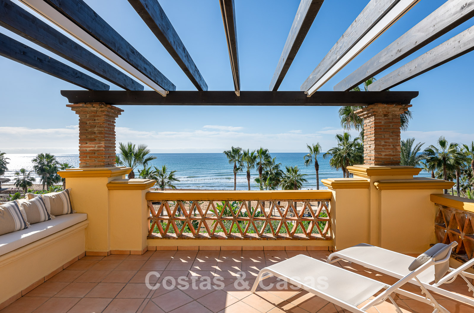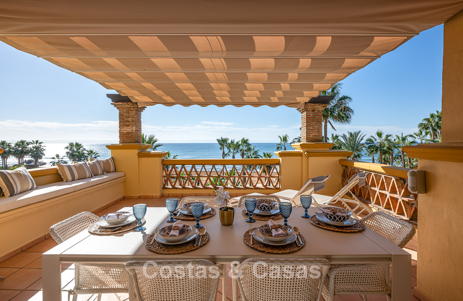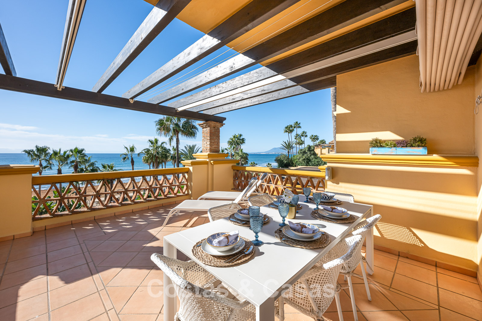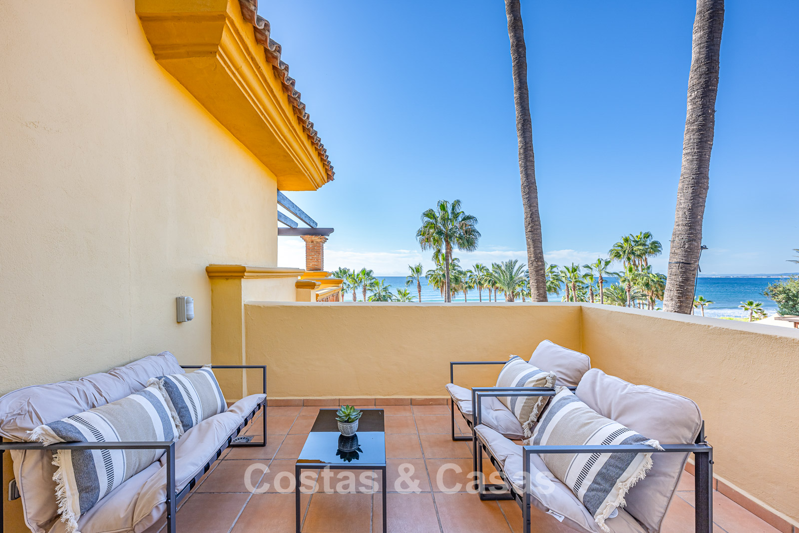 Eerstelijns strandappartement met zeezicht te koop in Oost Marbella