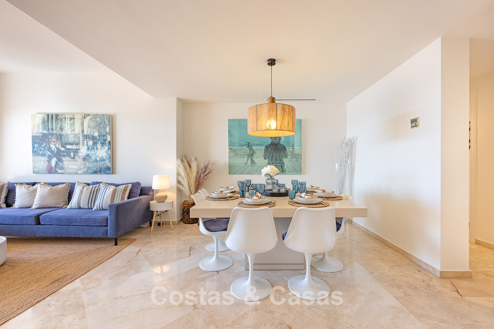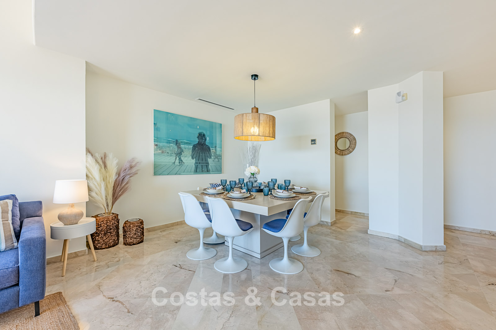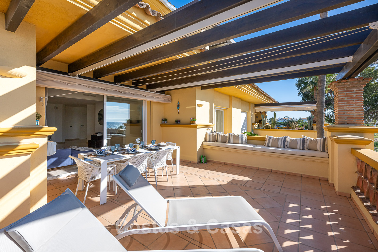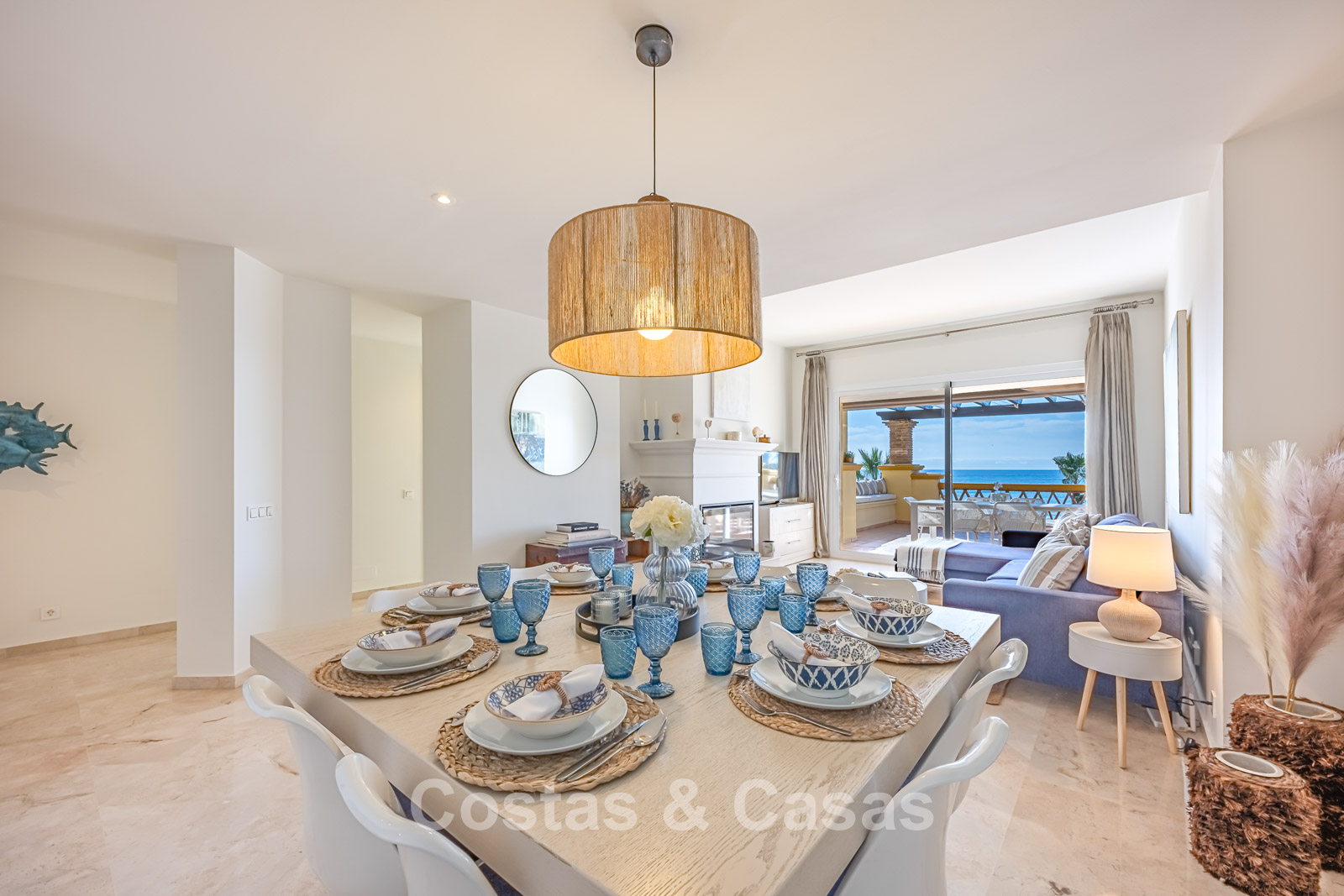 Eerstelijns strandappartement met zeezicht te koop in Oost Marbella