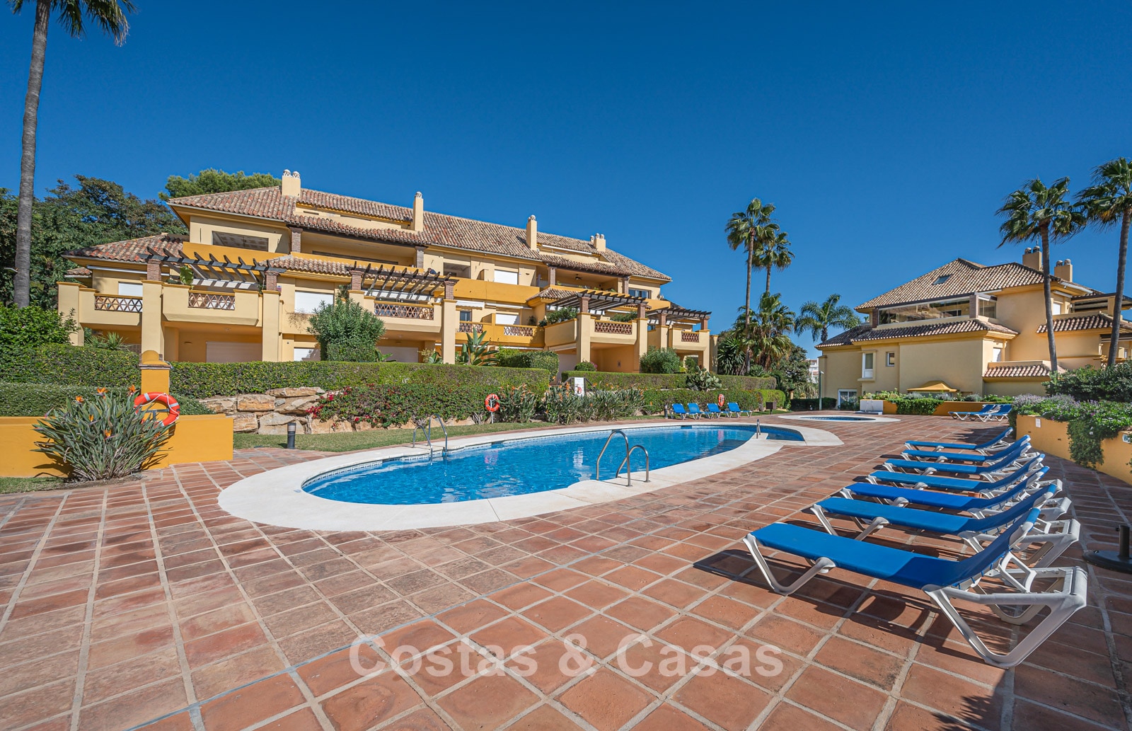Ruim appartement in een eerstelijns strandcomplex met een mediterrane bouwstijl.