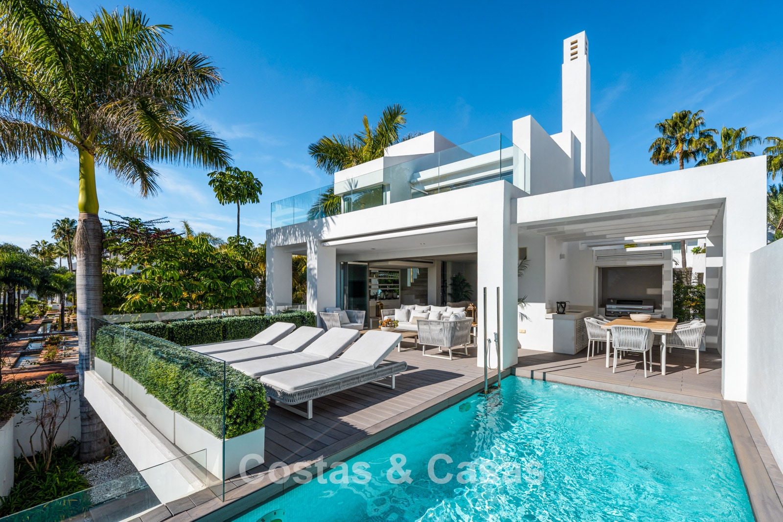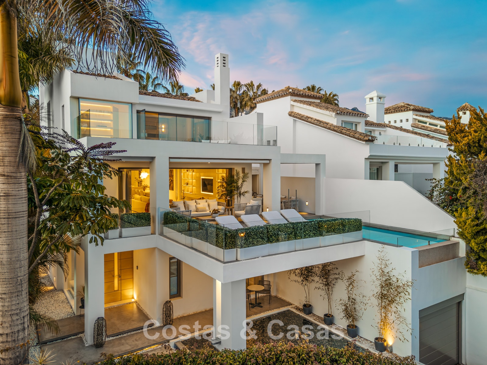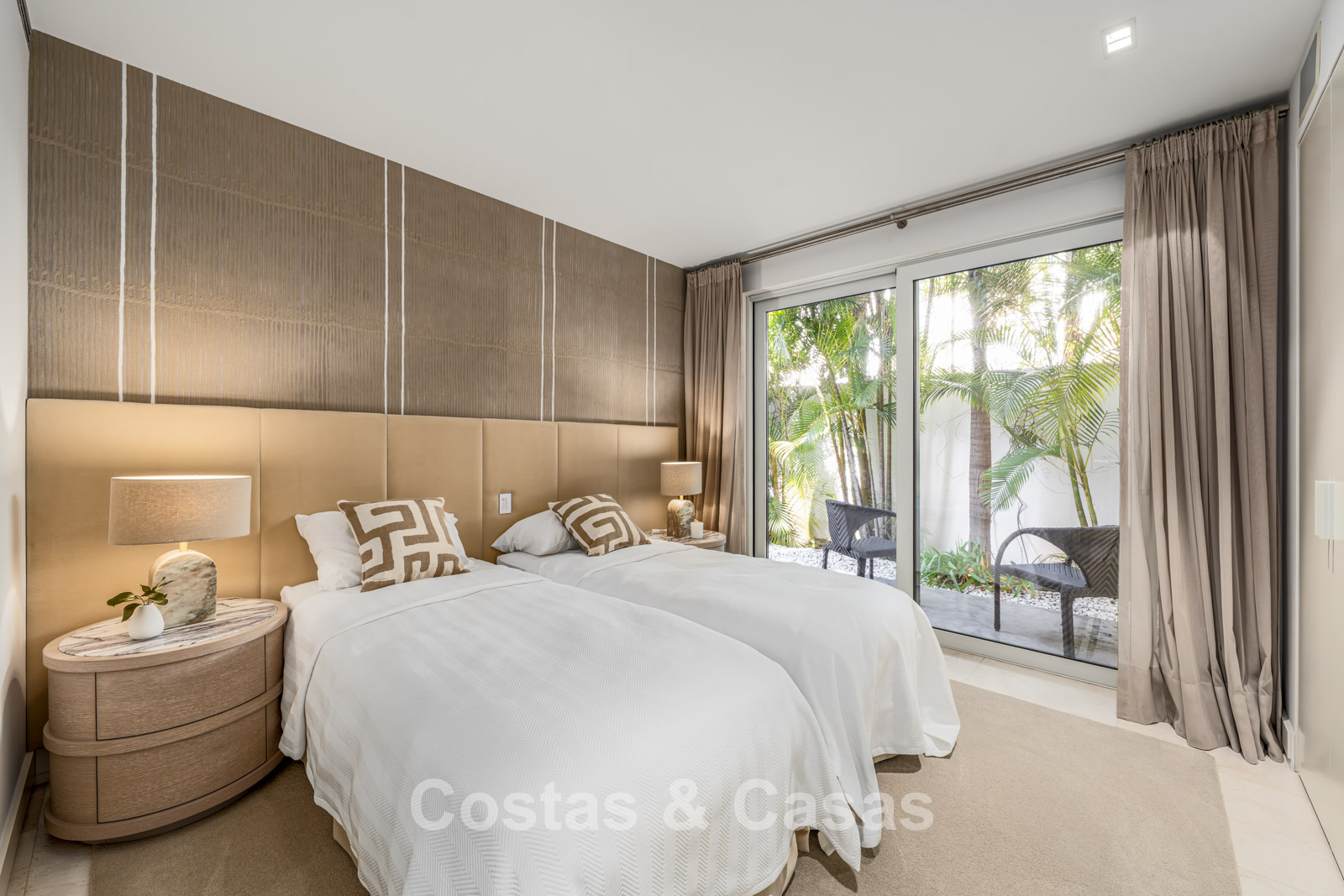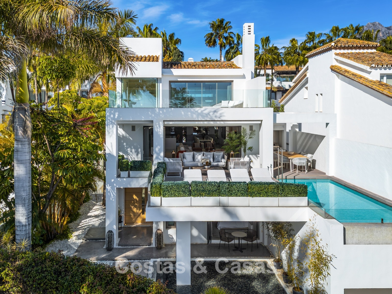 Prestigieuze, modern gerenoveerde, halfvrijstaande villa te koop, tweede lijn strand in Puente Romano op Marbella’s Golden Mile