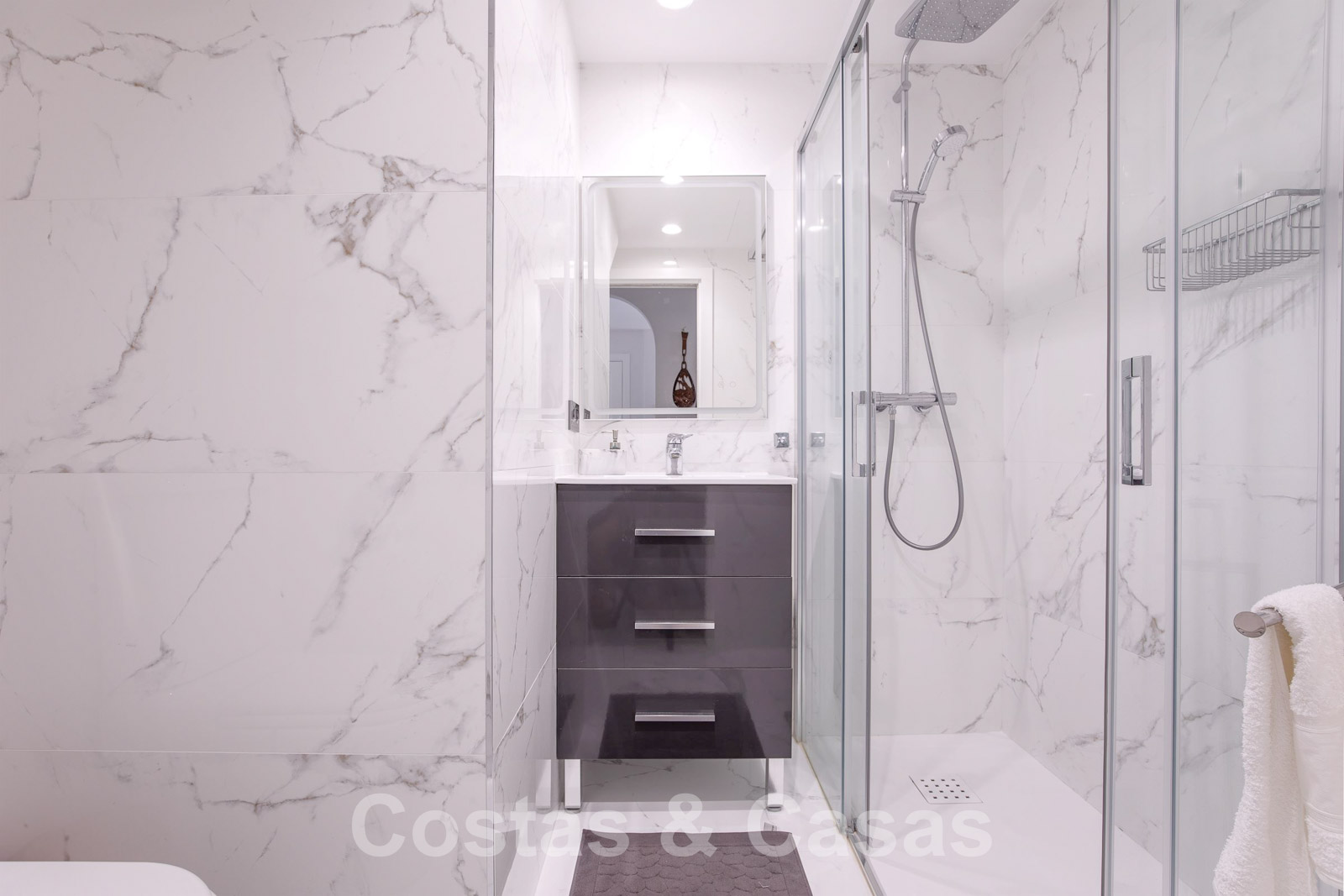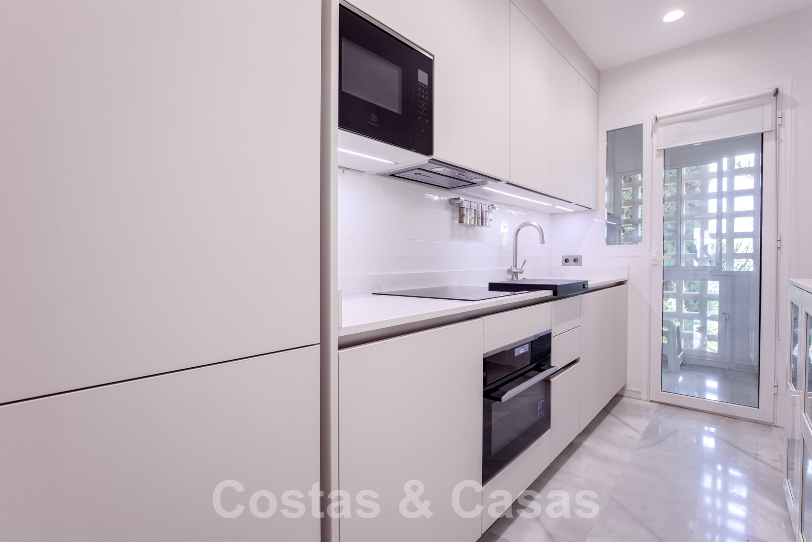 Puerto Banus’ mondaine jachthaven, luxueuze designerboetieks, verfijnde restaurants, bars, sterrenhotels, banken, het warenhuis ‘El Corte Inglés’ en een brede waaier aan sportvoorzieningen liggen op enkele minuten wandelen.