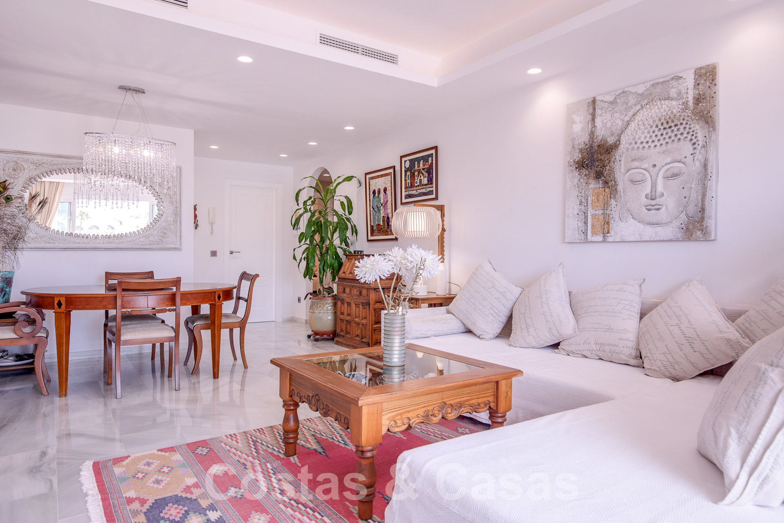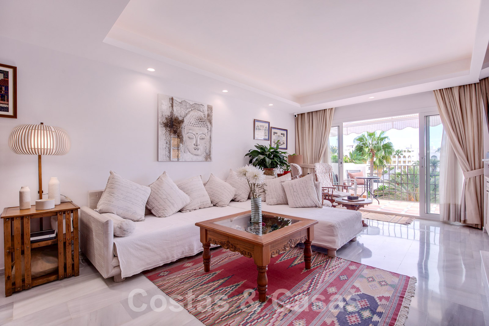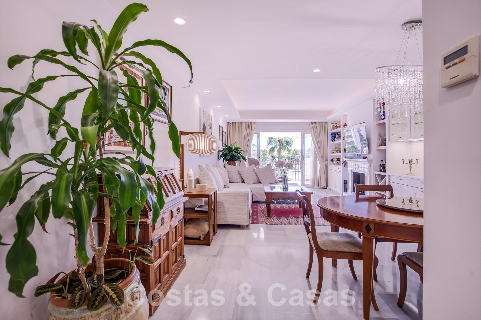 Op 5 minuten rijden met de auto of een uur langs de geanimeerde boulevard van de Golden Mile, bezaaid met gezellige restaurants, strandclubs en faciliteiten van de 5 sterren-resort Puente Romano en Marbella Club.