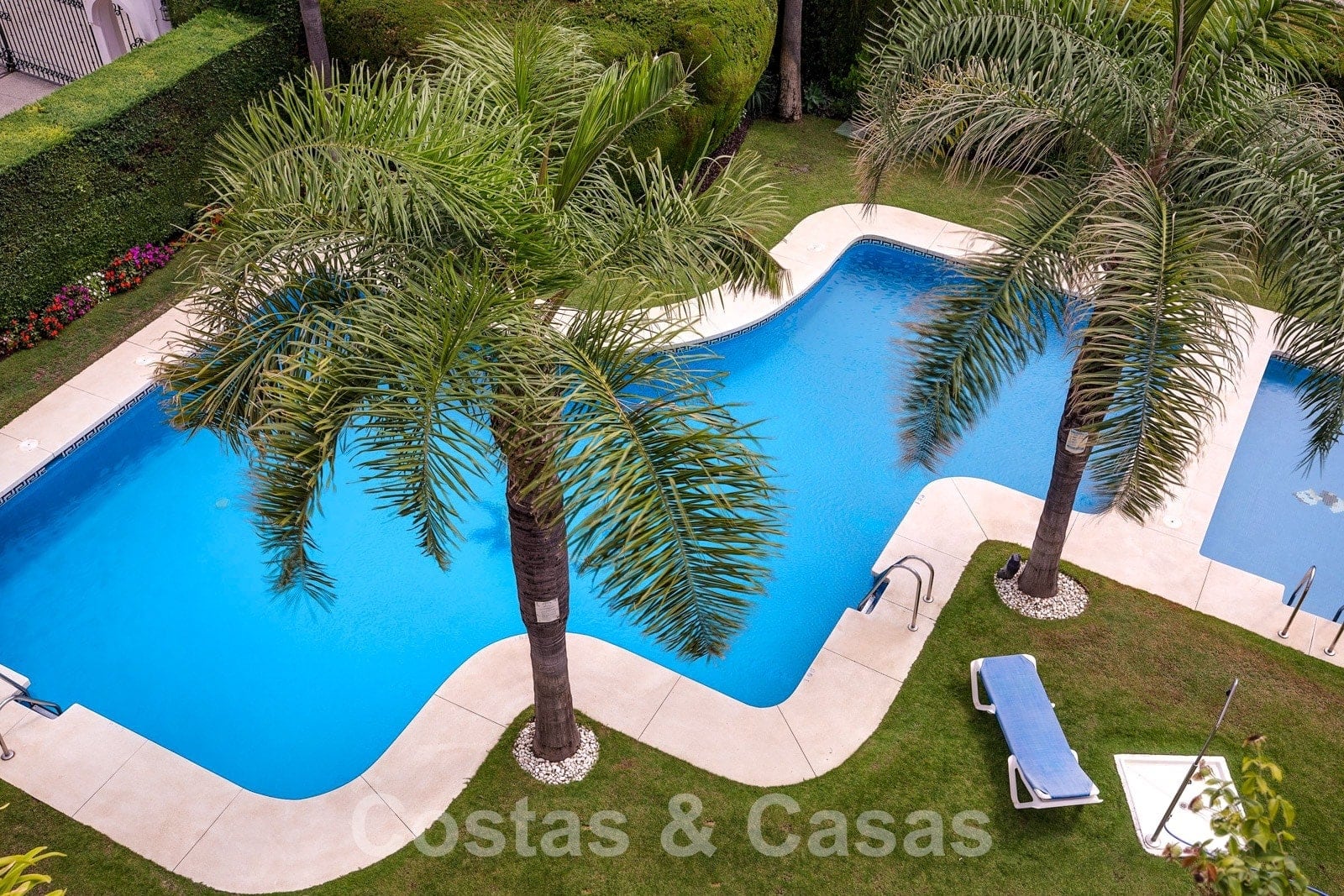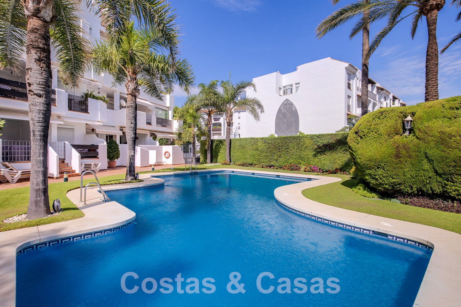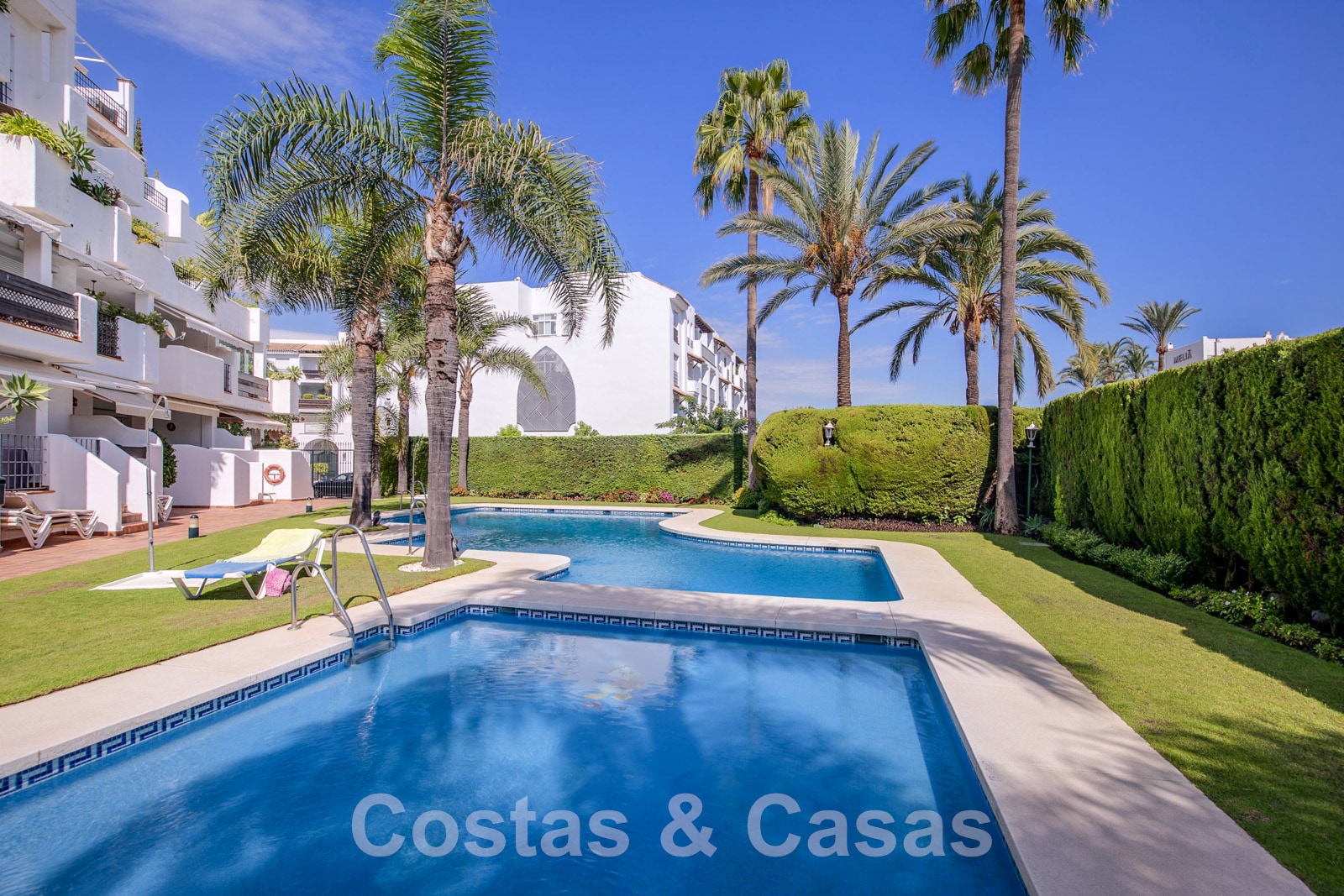 De bewoners van het complex genieten van gemeenschappelijke tuinen en zwembad.