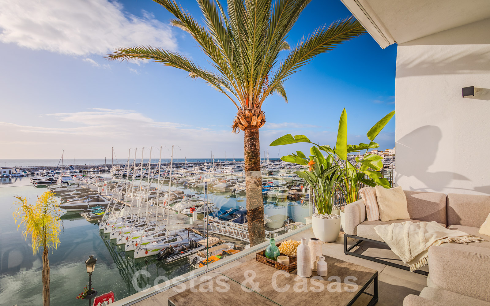 Fenomenaal uitzicht op de jachthaven en de Middellandse Zee.