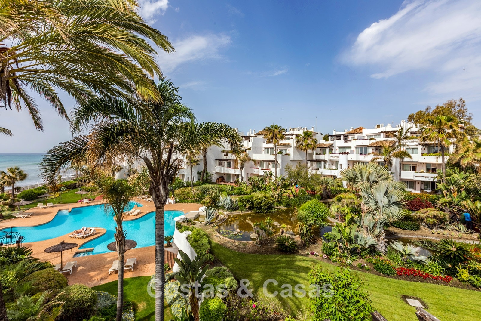 Duplex penthouse te koop met zeezicht in een eerstelijns strandcomplex op loopafstand van Puerto Banus, Marbella