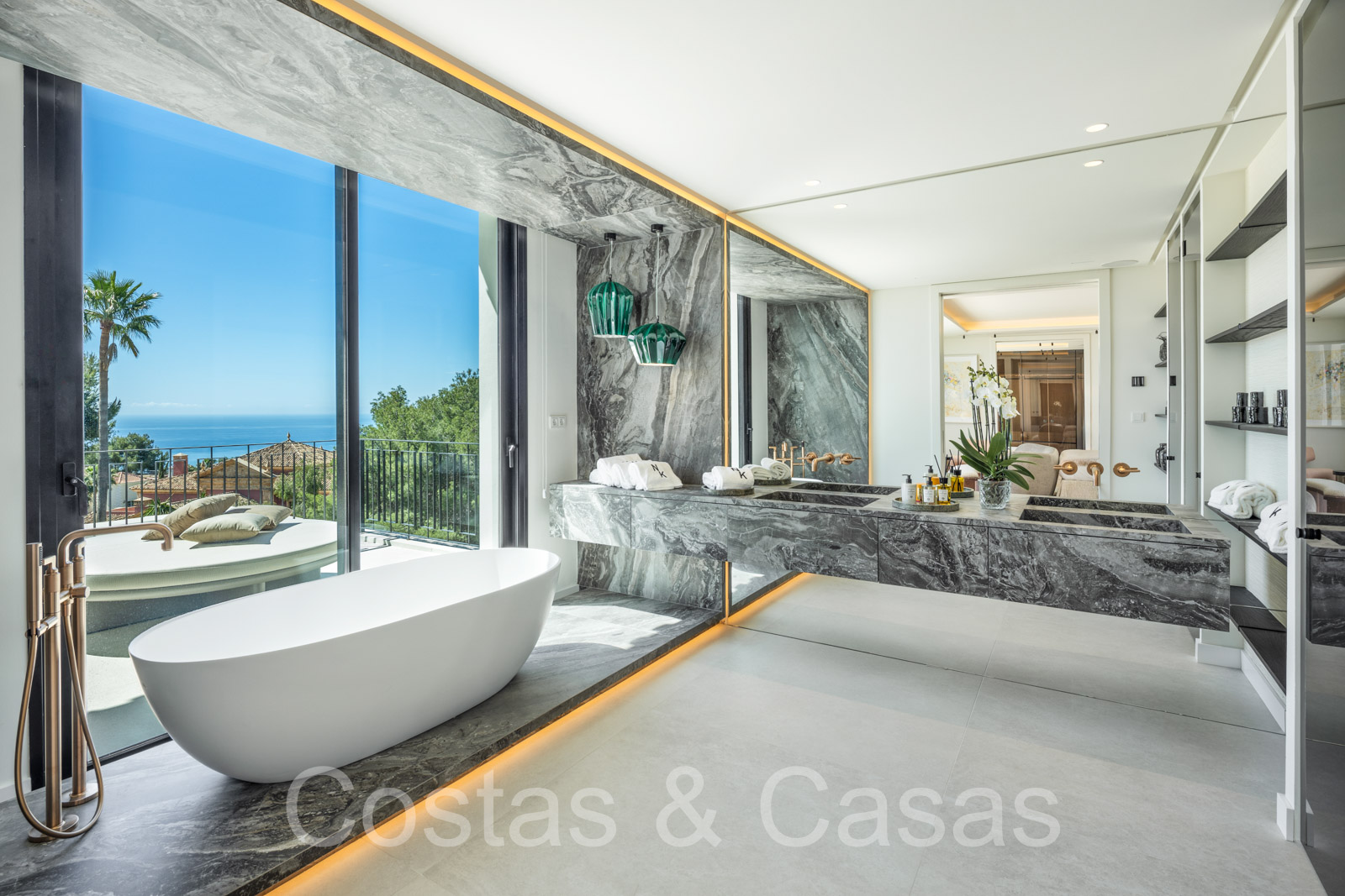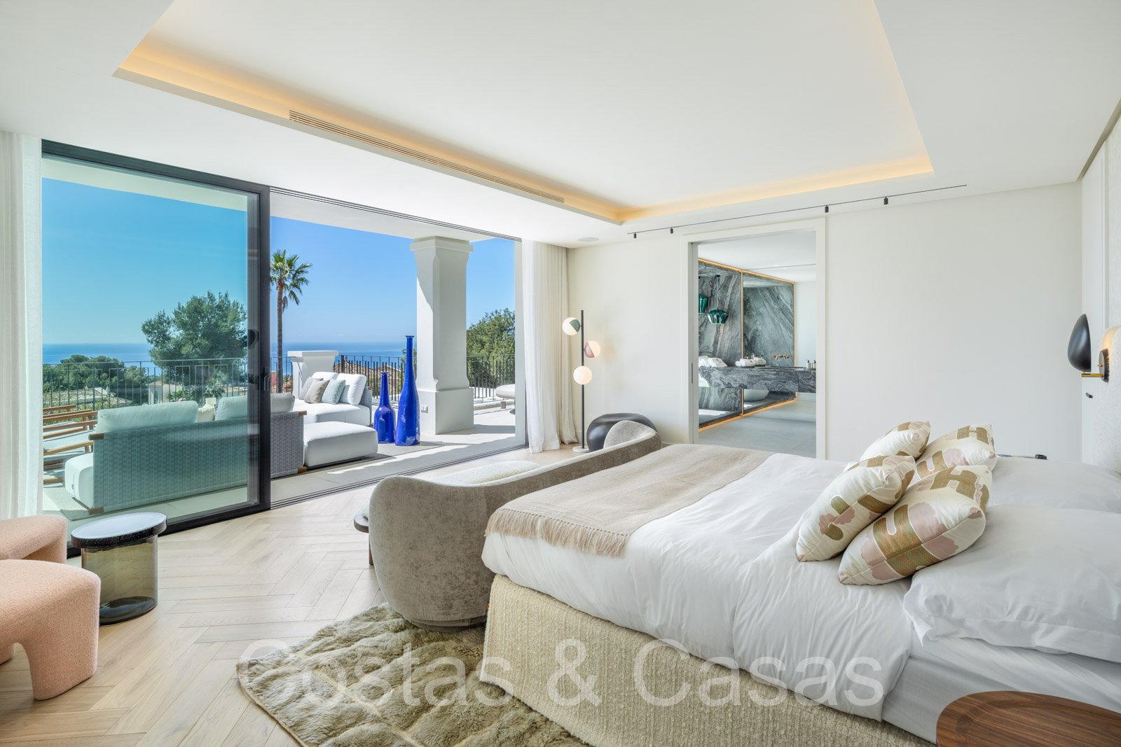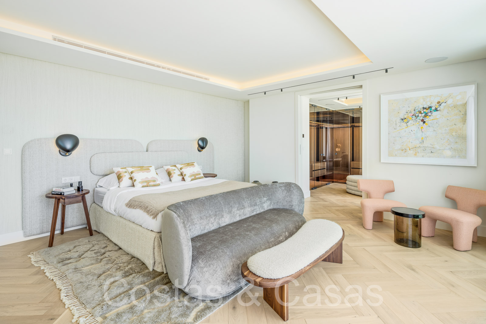 De grote master suite met adembenemend uitzicht op zee, een weelderige kleedkamer en een prachtige eigen badkamer.