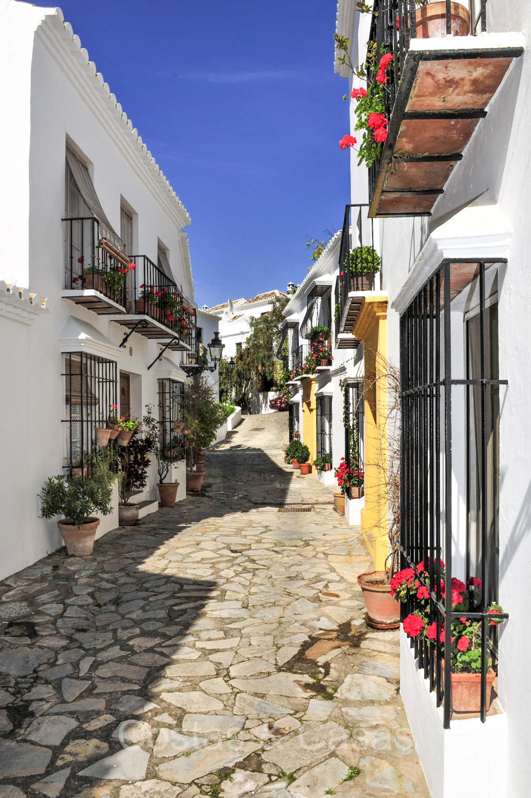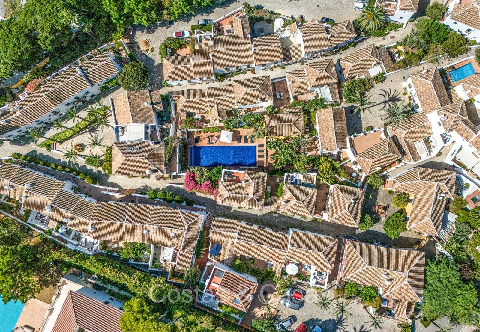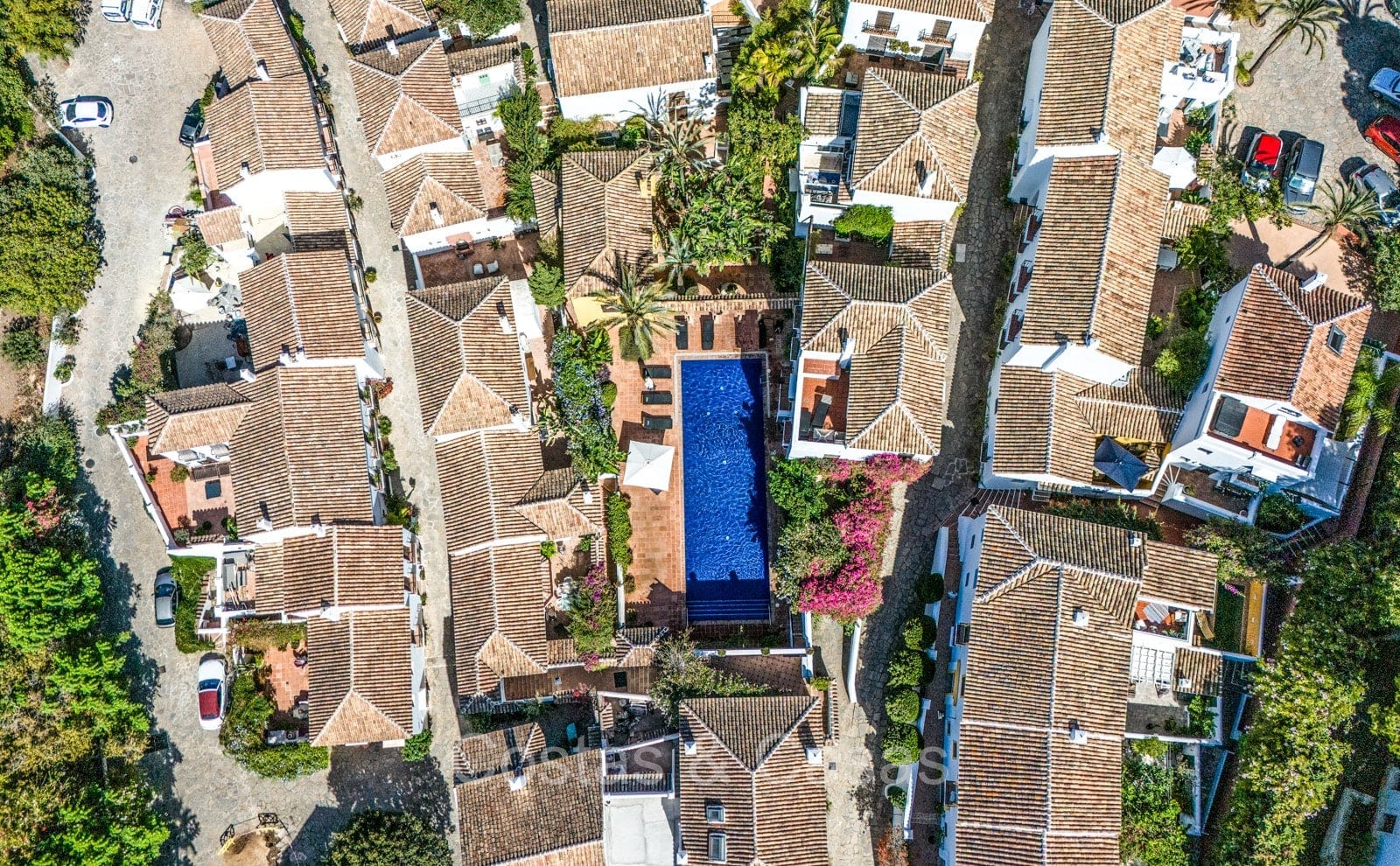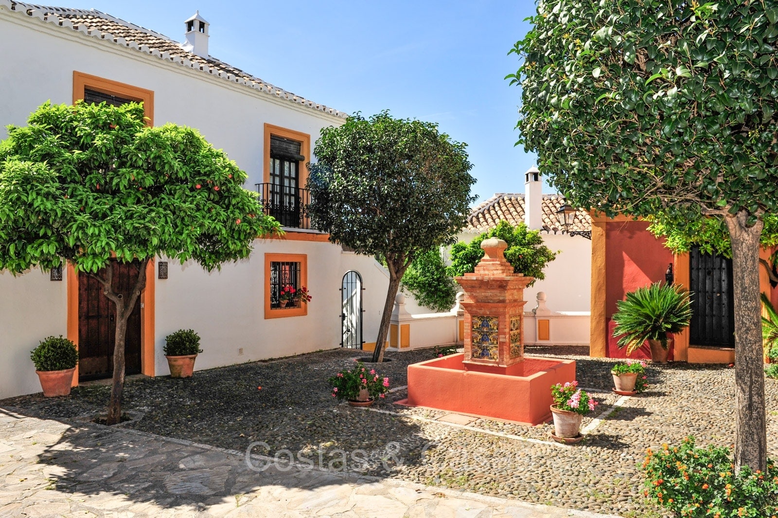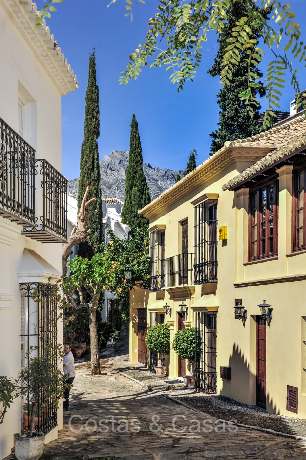 Het traditioneel ‘pueblo’-complex staat bekend om de witgekalkte huizen, smalle straatjes, sfeervolle pleintjes en zonnige terrassen, met karakteristieke betegelde gevels en sierlijke smeedijzeren balkonnetjes die de authentieke Andalusische charme uitstralen.