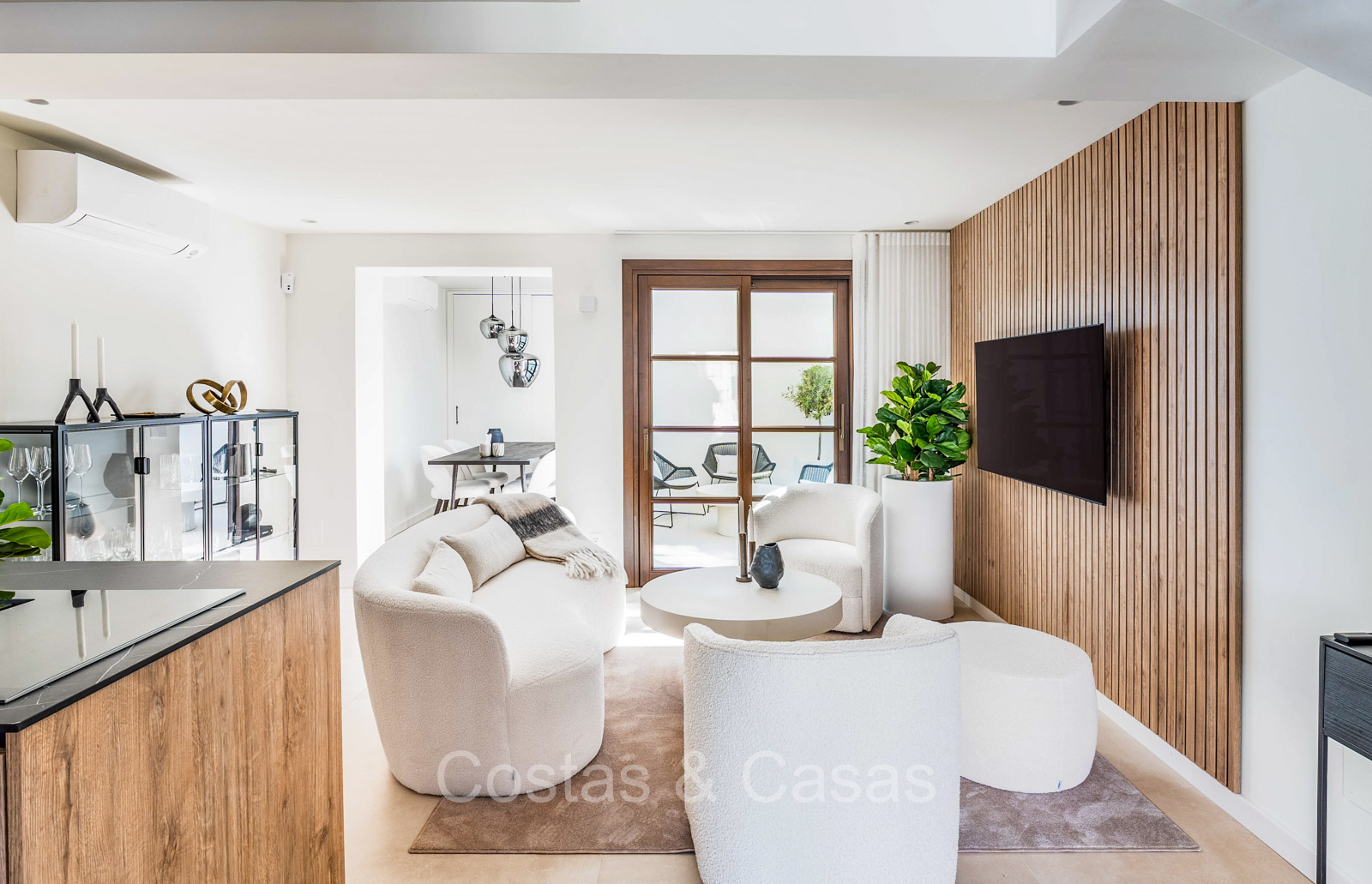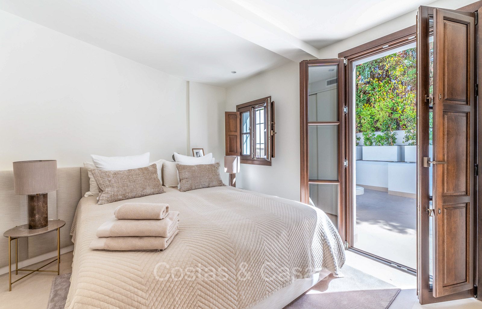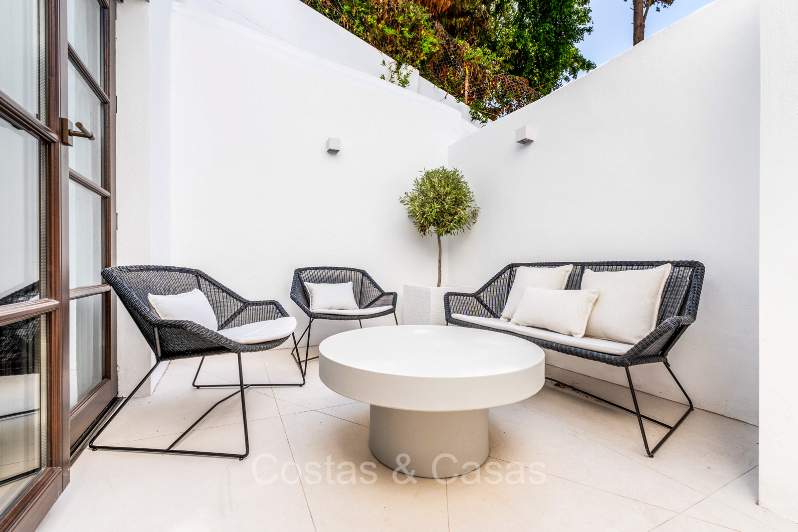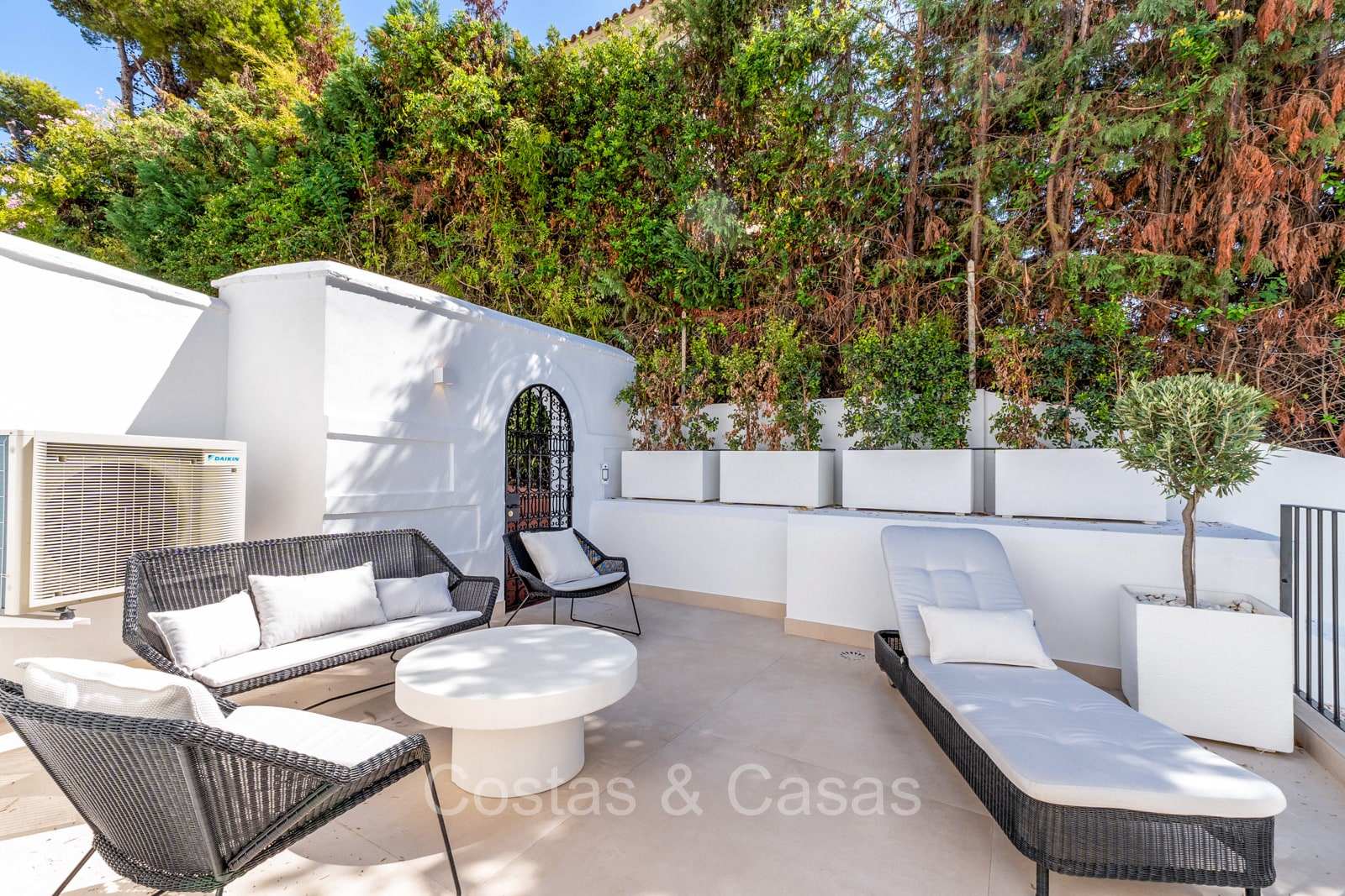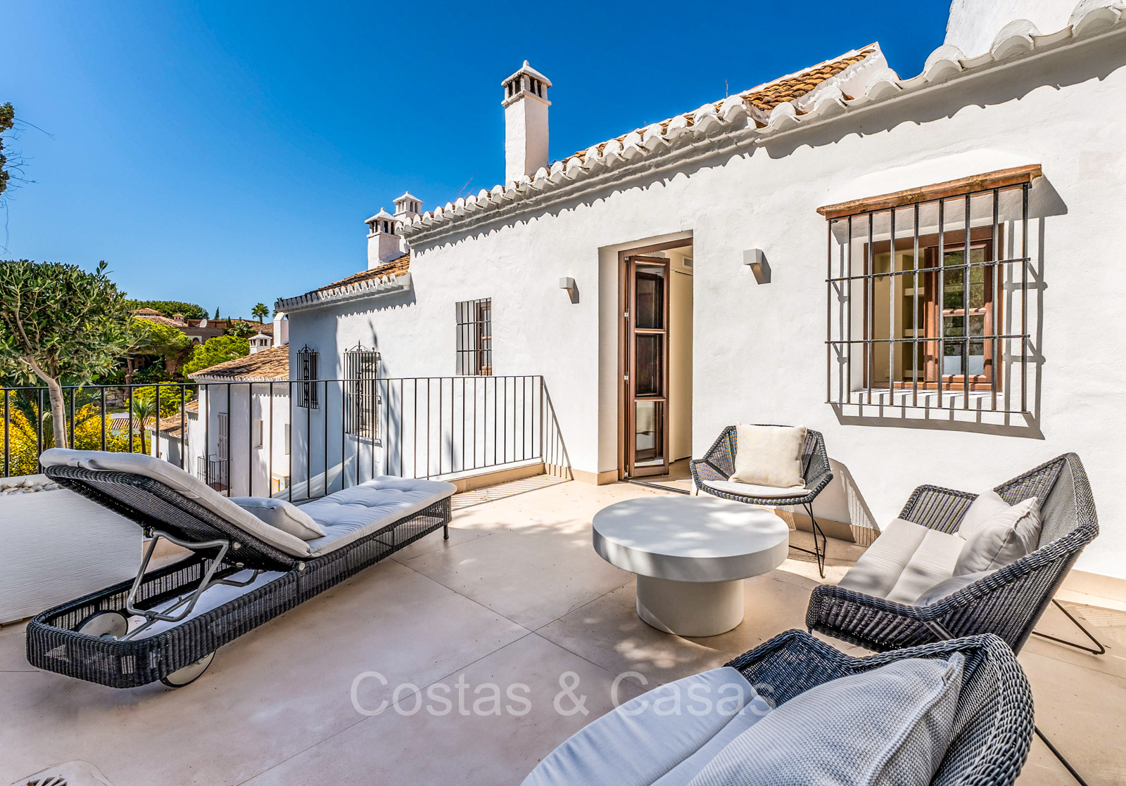Men geniet van pittoreske balkons en ruime patio’s, perfect om te ontspannen, dineren of simpelweg te genieten van de zon.