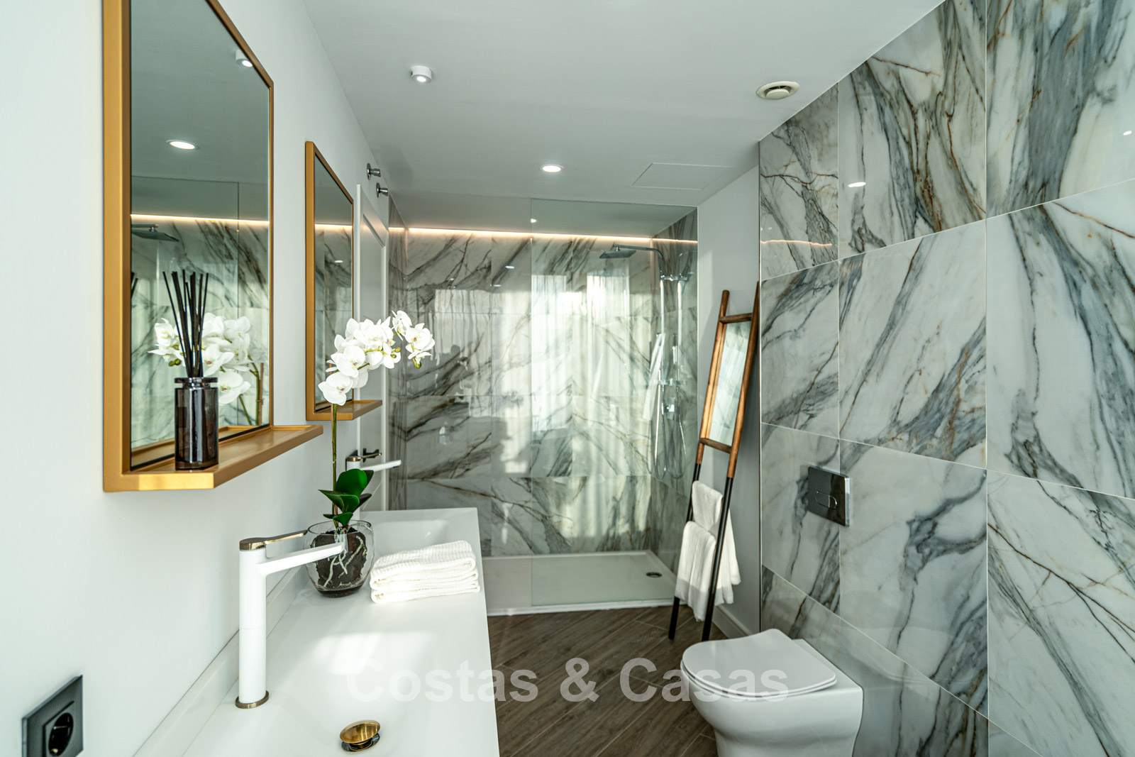 Open keuken, woon- en eetkamer, met directe toegang tot de terrassen en het zwembad