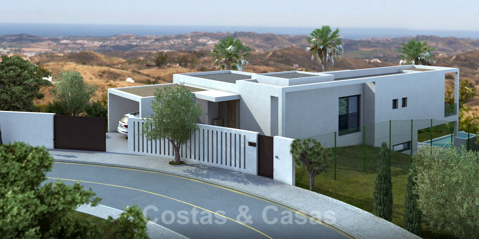 Luxe nieuwbouw villa in modern stijl te koop met panoramisch berg- en zeezicht in de prestigieuze wijk Valtocado in Mijas, Costa del Sol
