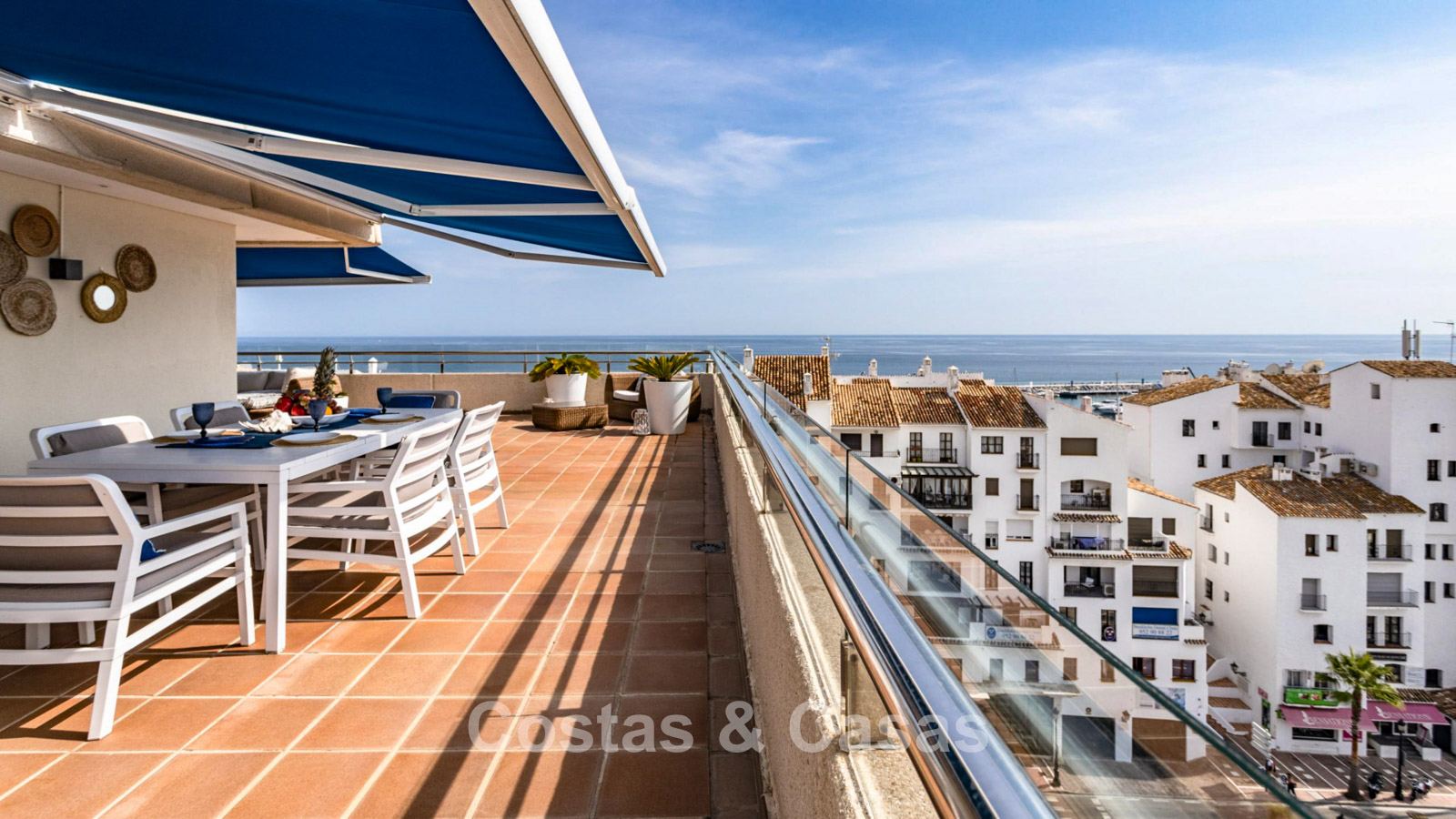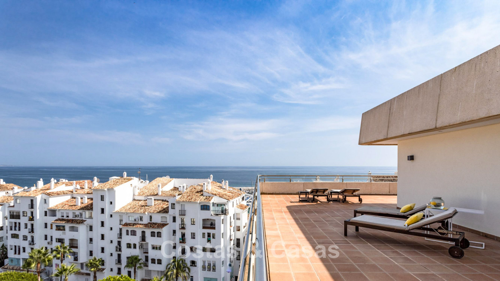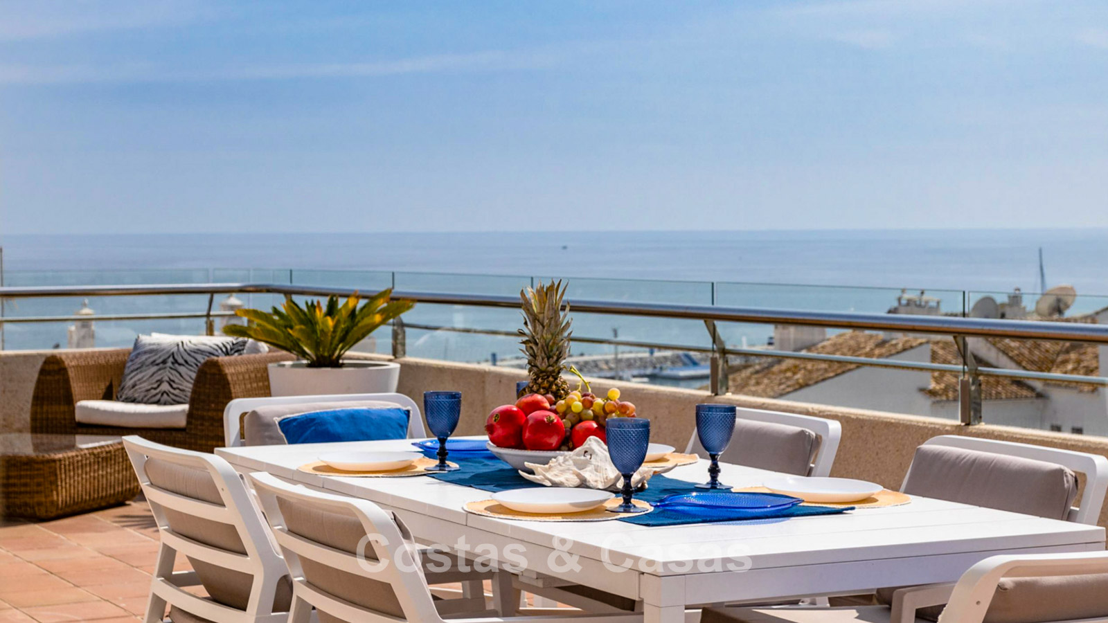 Penthouse met panoramisch zeezicht te koop op een steenworp van alle voorzieningen en het strand in Puerto Banus, Marbella