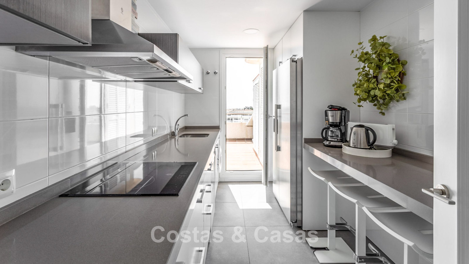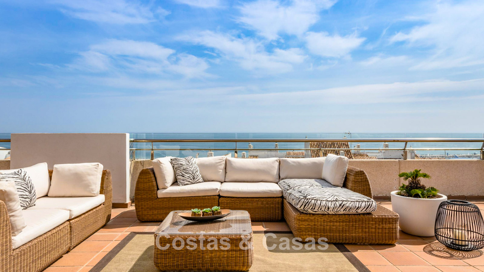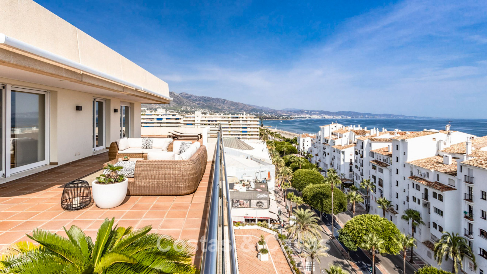 Penthouse met panoramisch zeezicht te koop op een steenworp van alle voorzieningen en het strand in Puerto Banus, Marbella