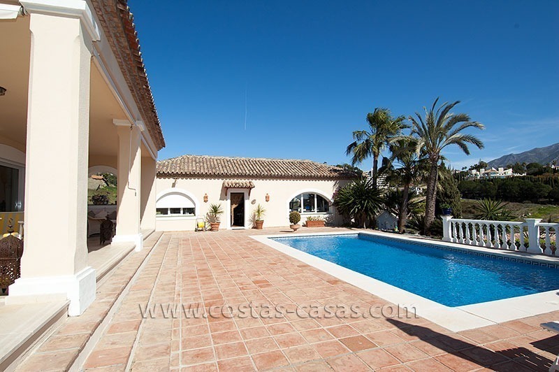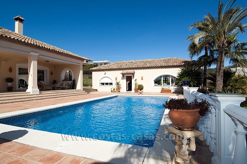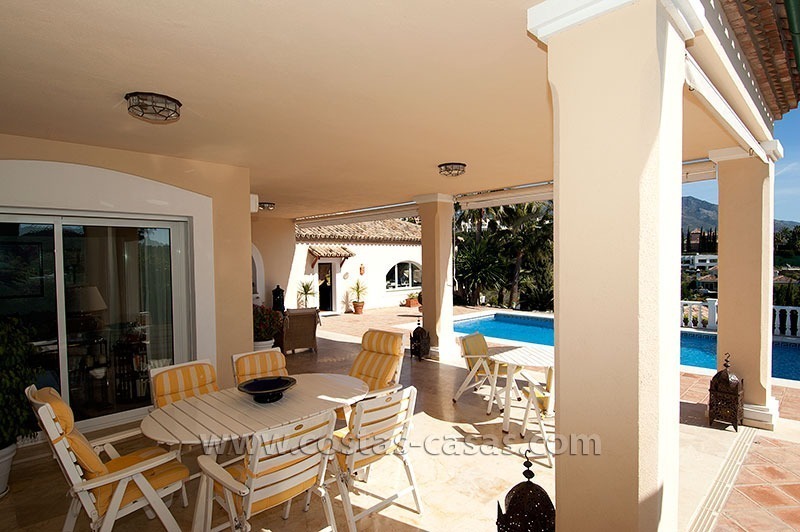 De villa beschikt over een ruime bemeten zwembad, omringt door een evenzo groot deck dat aansluit op een royaal overdekt terras. De woning biedt weidse vergezichten op het stadsbeeld van Marbella, de achterliggende bergketen en de Middellandse Zee.